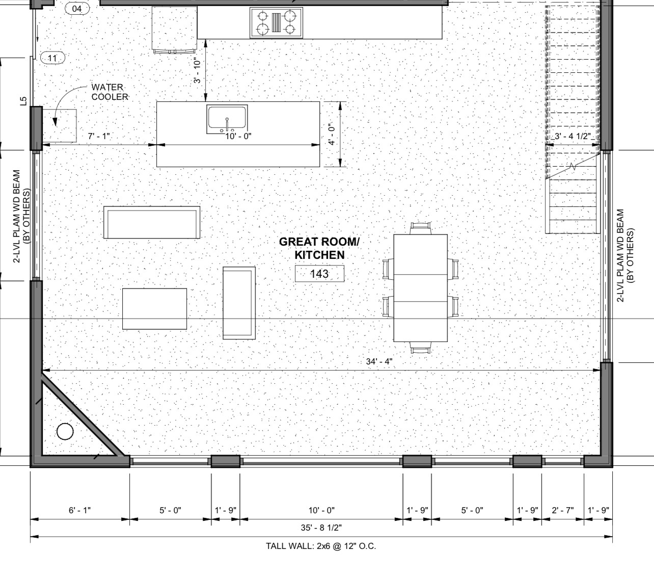 modernist interior shot create a high end interior rendering based on this floor plan the space has 19 foot side walls with a dramatic vaulted ceiling design an open concept living area with a corner floor to ceiling natural stone fireplace as the main feature wall add a substantial stone hearth and optional wood mantel include large windows for abundant natural light wide plank flooring and a warm neutral palette use realistic textures architectural lighting and ultra detailed materials render in a professional architectural visualization style architecture
