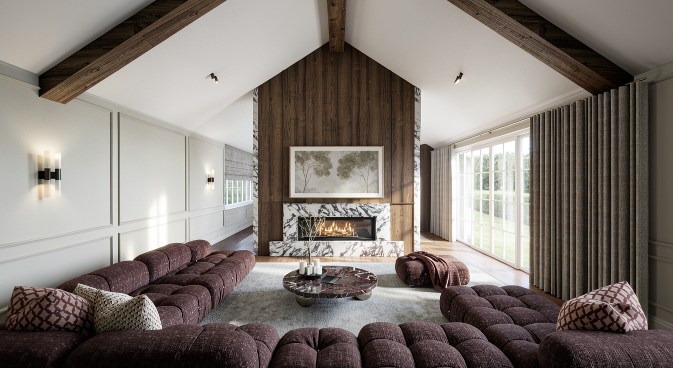 make upper cabinets darker so that they match the dark cream beige color of the perimeter bottom cabinets add natural tan bamboo roman shades to all windows color drench the window trim to match the wall and ceiling paint color add an upholstered bench cushion in a light blue and brown floral inspired print along with 2 3 pillows in striped solid and polk dot fabrics change the stools to a total of three transitional style counter stools with a curved woven backs two stools should be opposite the fruit bowl and one stool should be perpendicular to them update the faucet to a satin nickel finish add trim along the entire perimeter of the ceiling add two teardrop oval shaped glass pendants above the island add recessed cans around the space about 2 feet in from the perimeter of the room make the entire backsplash a glossy square white tile in varying shades of white add a glass door with mullions into the doorway cutout on the left add a wooden door to the doorway cutout that leads to the garage near to the fridge put a doormat in front of this door