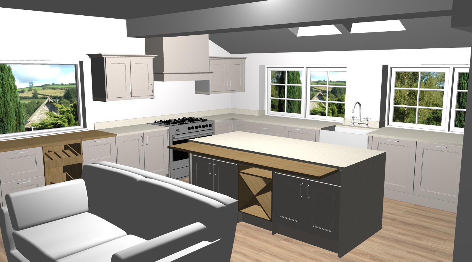 high quality render large format floor tile natural lighting dress the kitchen flowers on island and bar stools at island