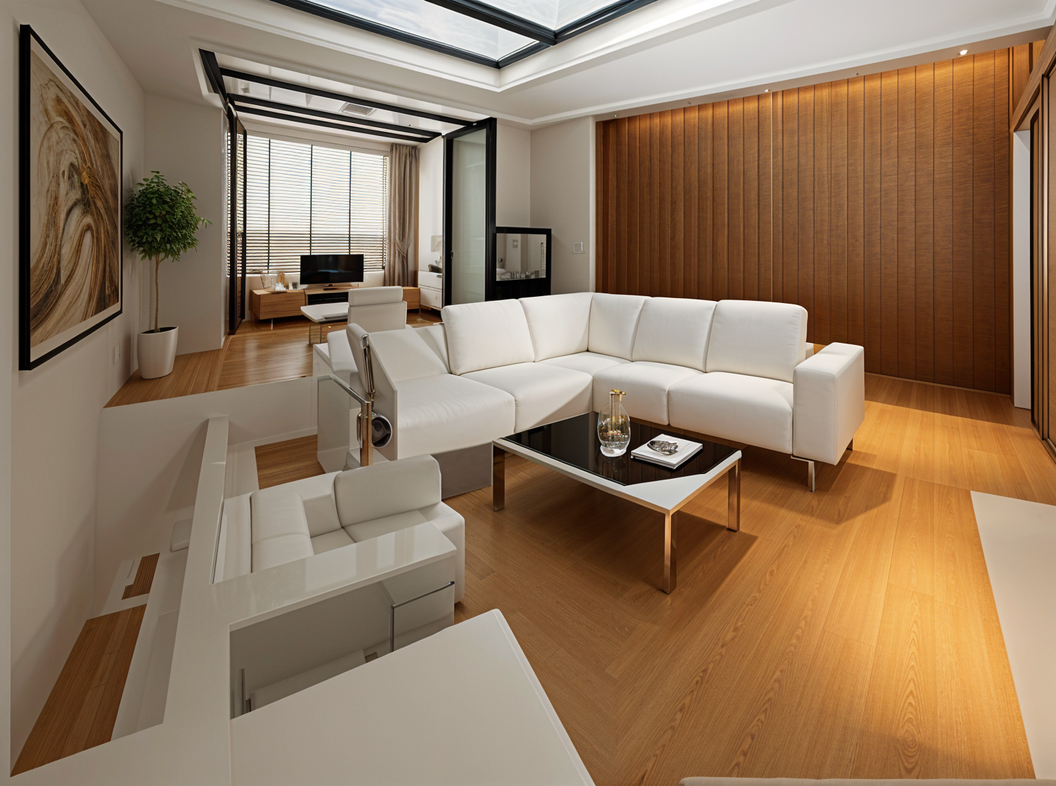 exterior shot realistic natural scene building in lake around with grass field shingle roof grey color realistic car artificial wood slats architecture