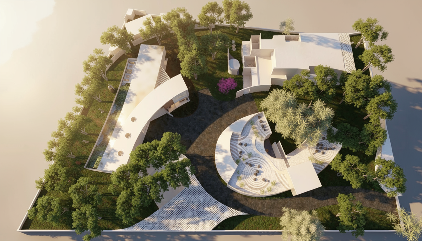 render a photorealistic 3d perspective of this house in luxembourg reference the current material style just enhance them grey brown cappucino keep model geometry the same windows doors roof walls add some vegetation and flowers do not change the view only enhance the current materials glass reflections and a vibrant clear sky with light atmospheric depth render in hyper realistic architectural visualization quality 8k resolution