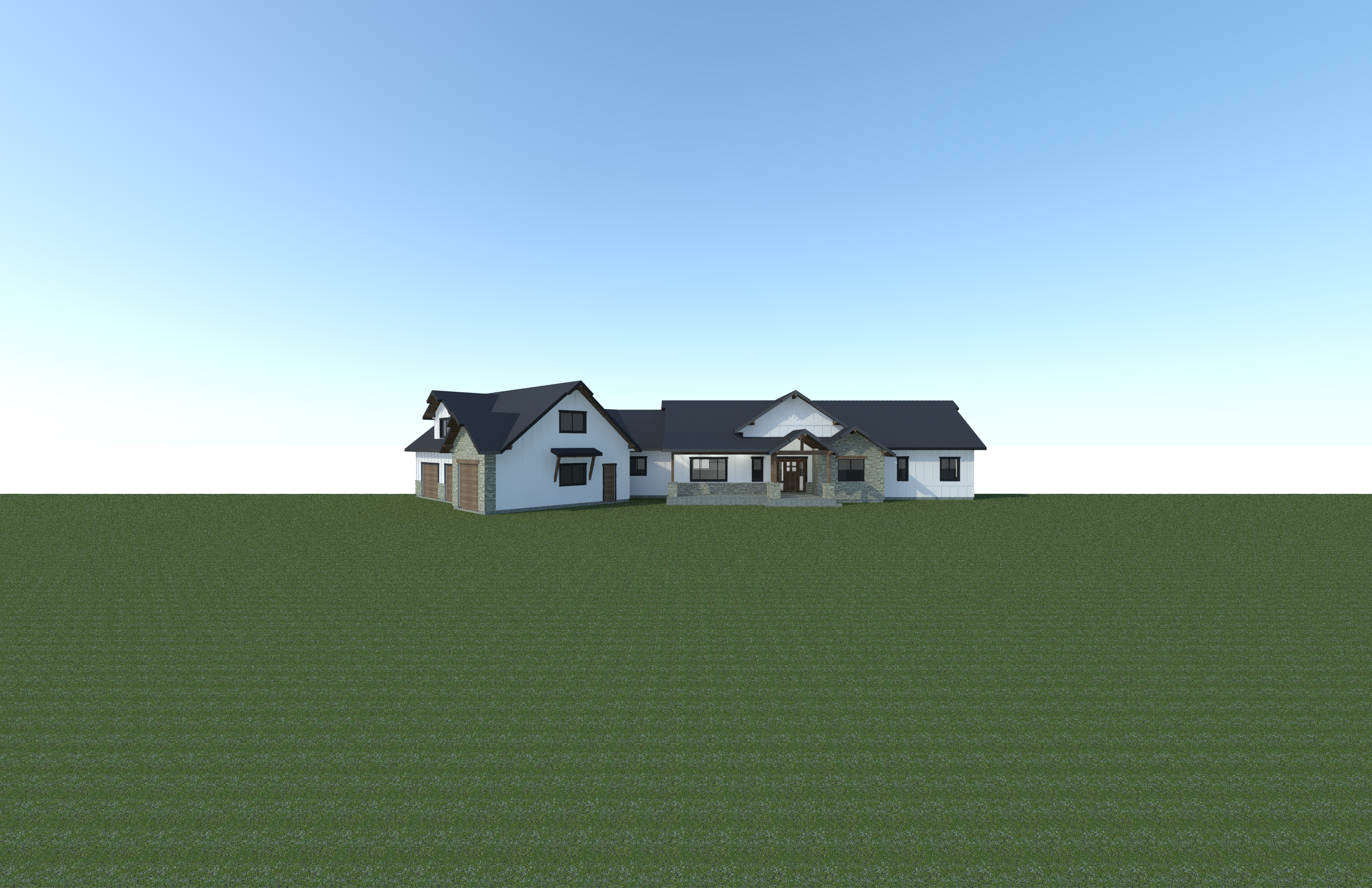 exterior shot do not change the style and shape of the hosue just add pine forest background and landscaping