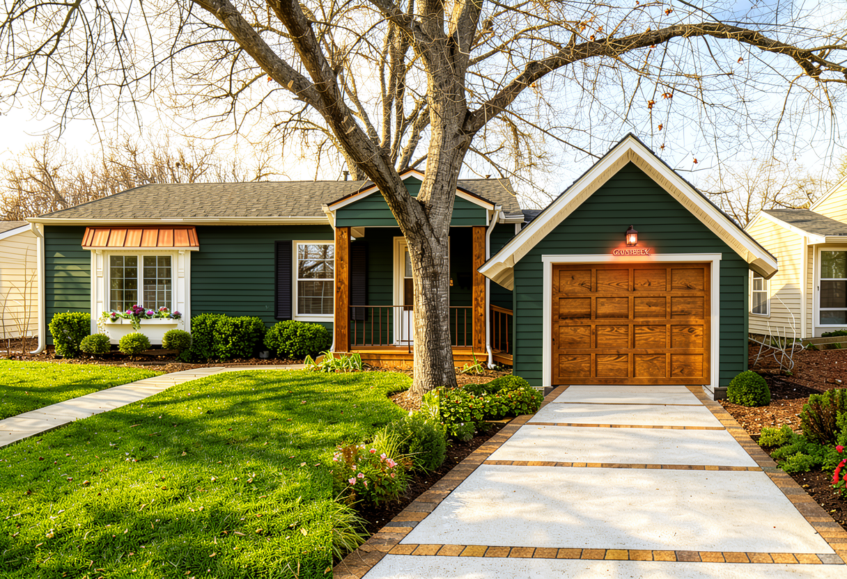 remove both sconces by garage door add gooseneck sconce over garage door in copper finish move up higher over garage door
