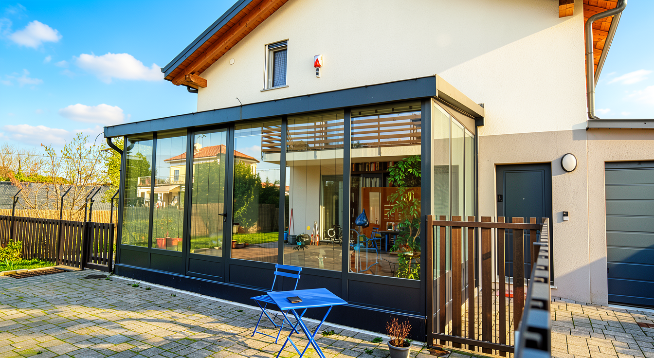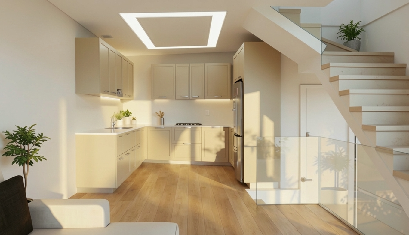 a ade una barandilla de vidrio al tramo de escalera que sube arriba