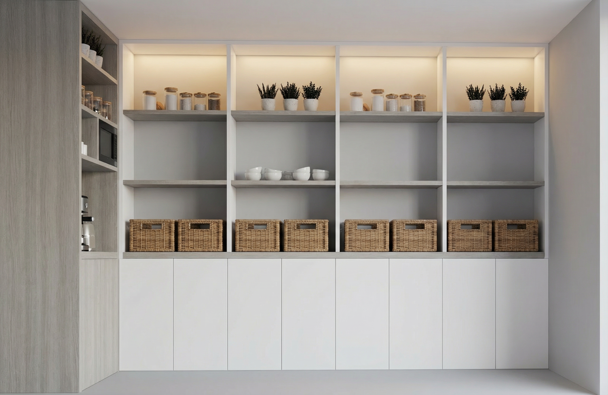 wall cabinets are dark gray almost black extractor is black put some accesoiries on the shelves down cupboards are color dark capuchino