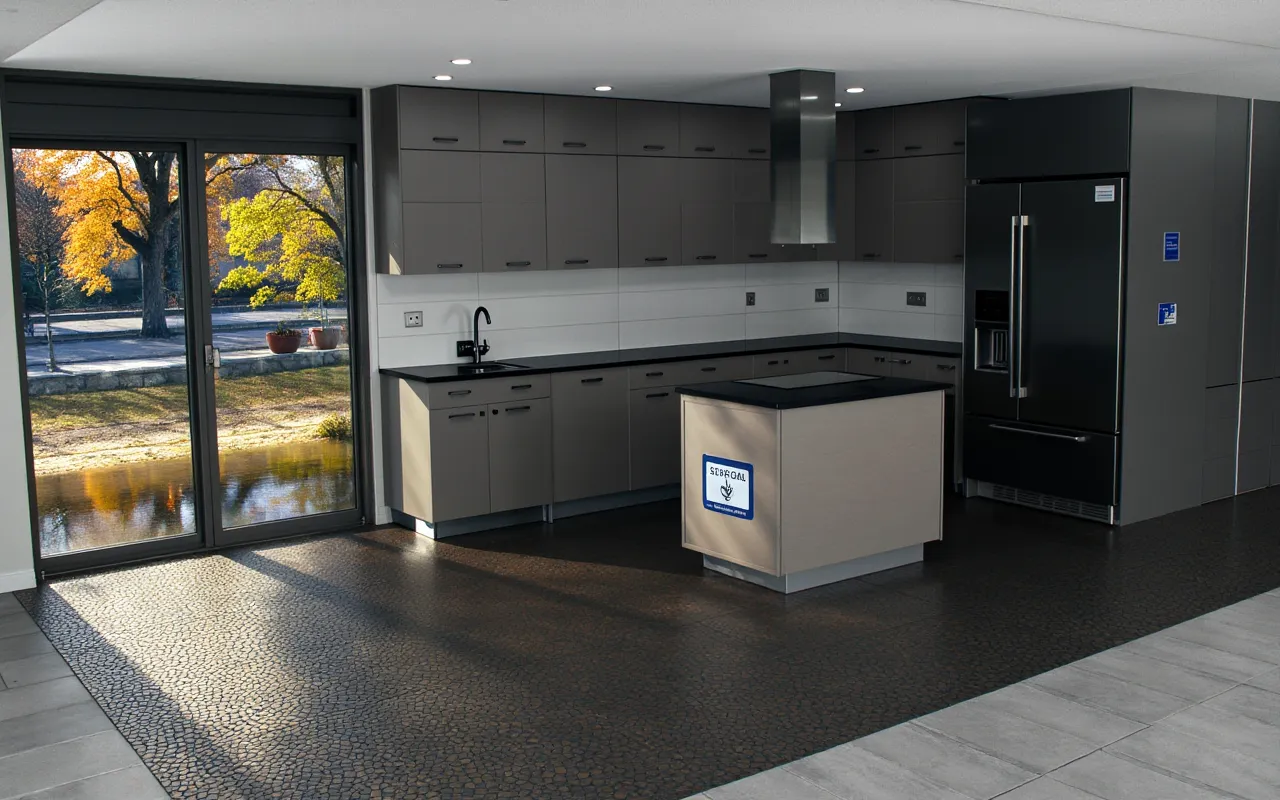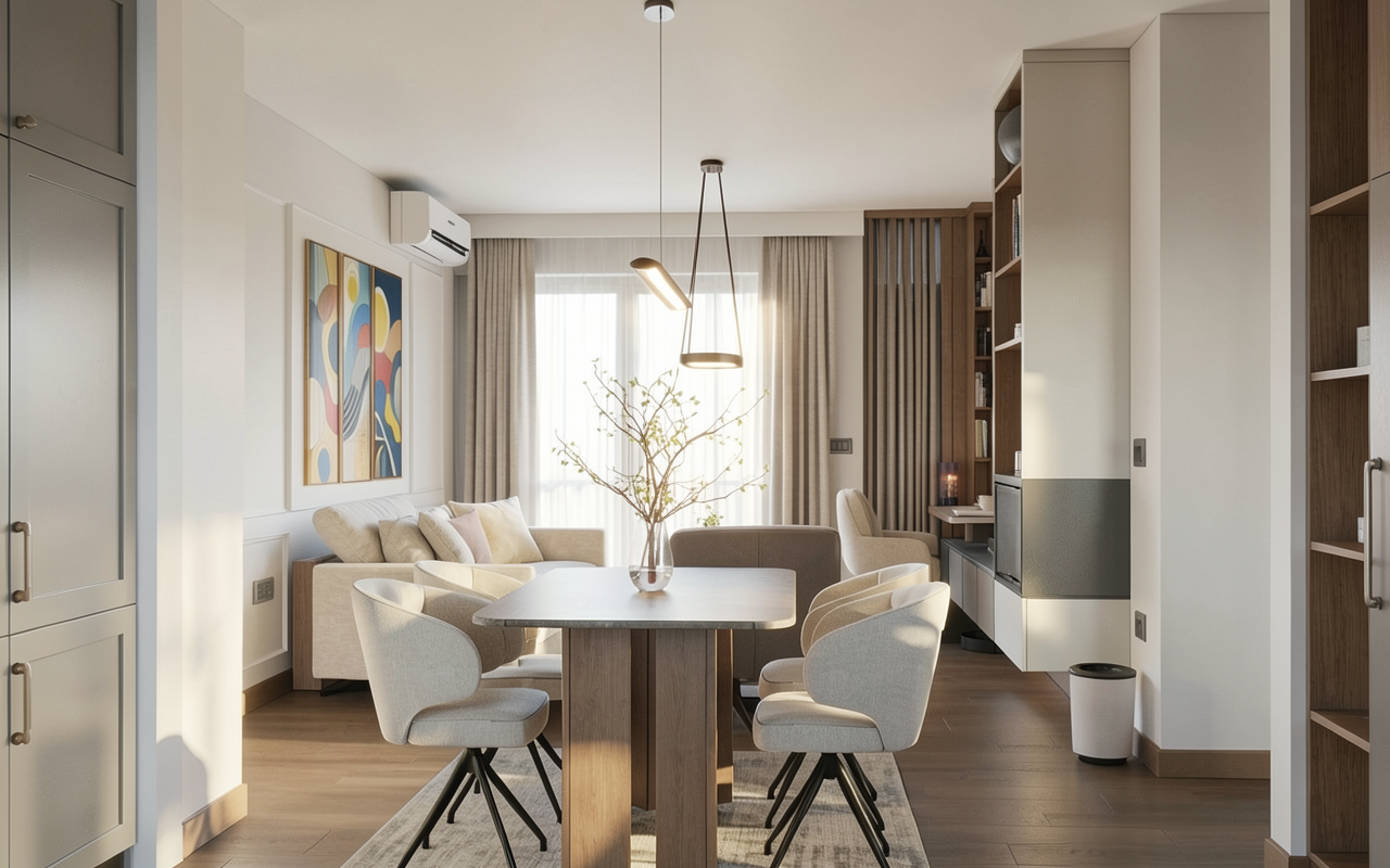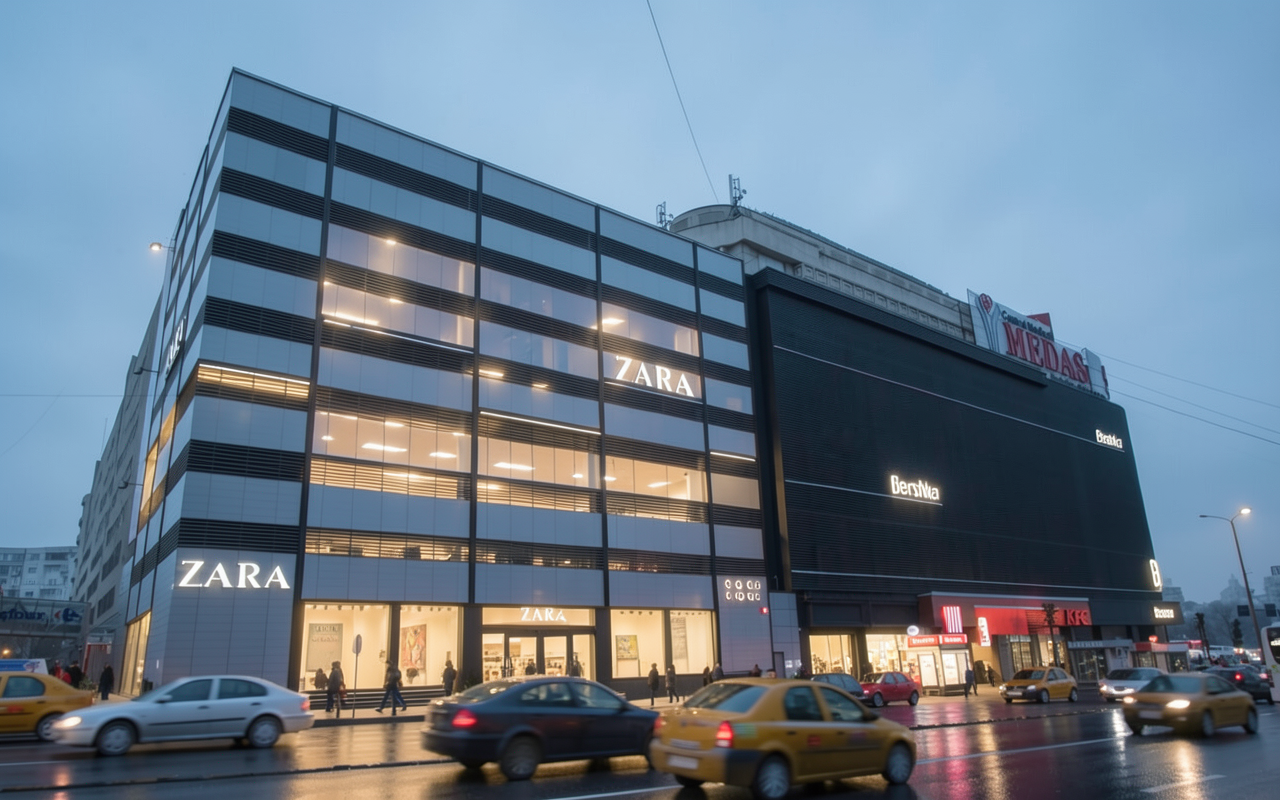 important preserve the existing geometry and the existing context exactly as provided do not modify alter reinterpret add remove scale or reshape any geometry do not change the site surroundings street layout neighboring buildings vegetation or context elements do not modify geometry scale proportions buildings road layout sidewalks or surrounding context in any way do not change text photorealistic architectural rendering clean and balanced contrast calm cinematic mood style contemporary european public architecture minimalist premium understated soft overcast blueish sky evening atmosphere diffused cold natural evening light with subtle blue grey tones cinematic architectural mood warm interior lighting 3000k glowing from inside creating strong contrast between cool exterior and warm interior wet pavement with smooth reflective surface soft light bounce and blurred reflections high dynamic range lighting realistic global illumination soft shadows calm and minimalist nordic mood photorealistic architectural visualization balanced exposure no harsh highlights do not add windows add motion blur to cars and people