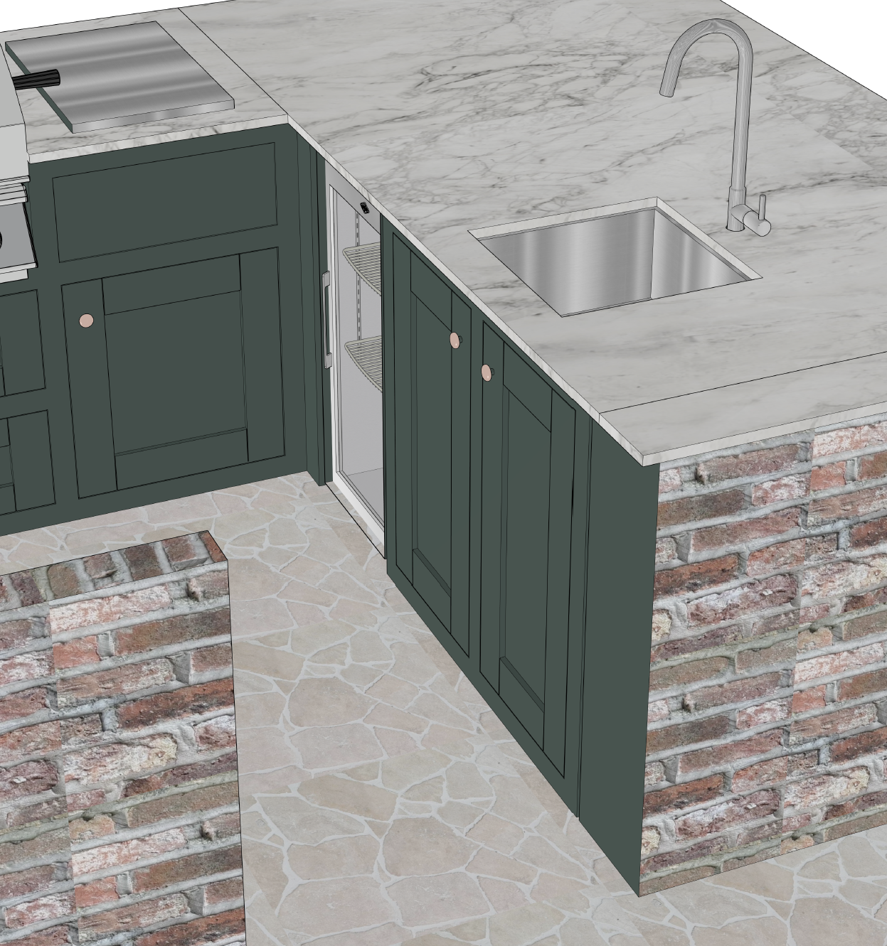 remove the wood effect from the cabinets and instead have a powder coated texture the colour of the cabinets needs to be neptune charcoal can view be extended past to include grass behind the kitchen