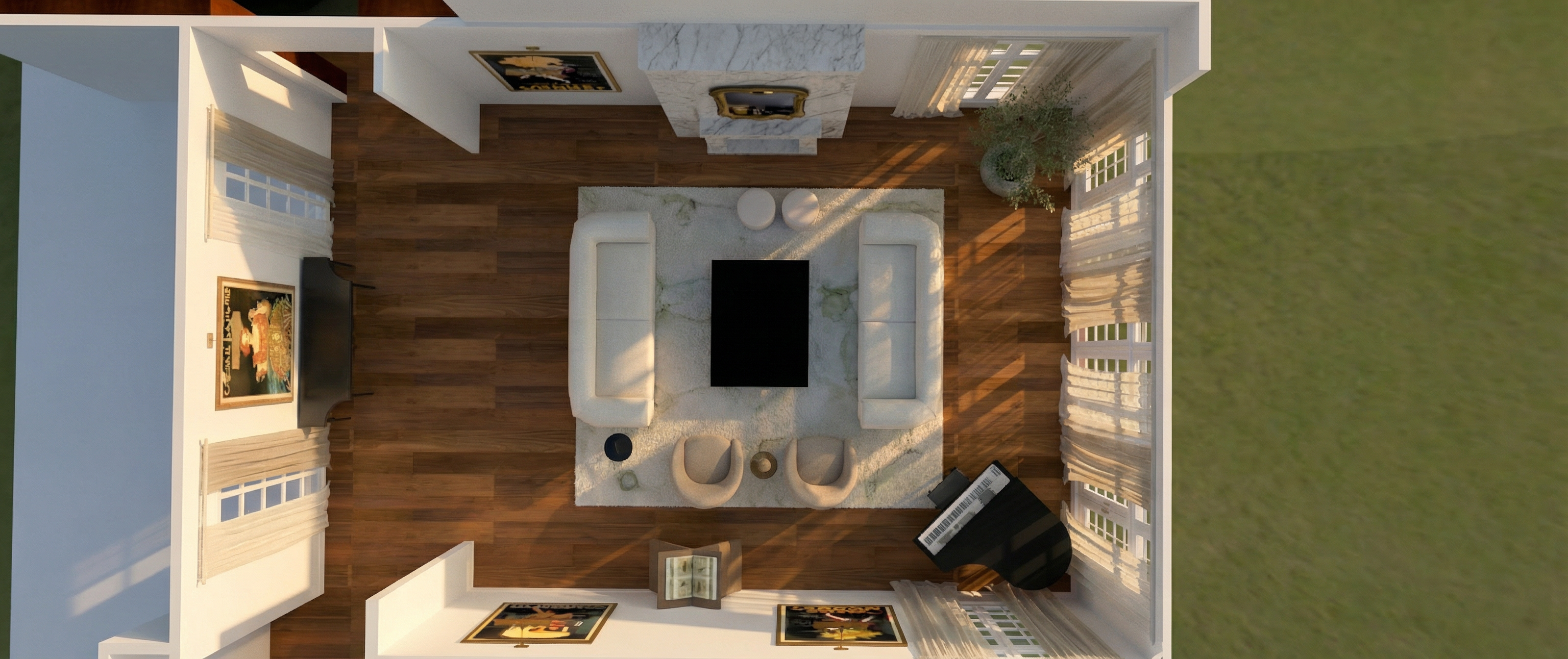 warm and inviting interior space kitchen island on left side grassy idaho rolling hills landscape tetons very small in far distance