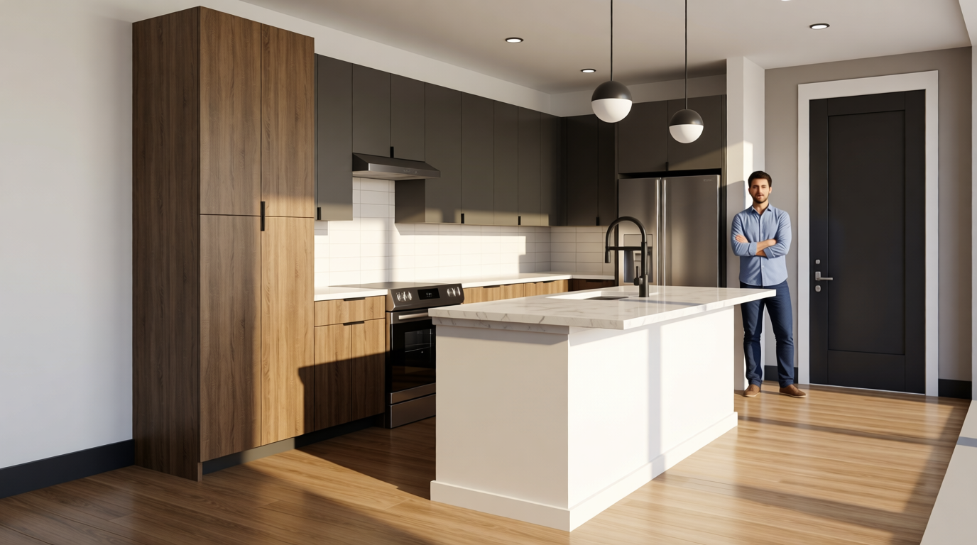 afternoon view enhance the olive trees and lavender plants to make them look more realistic make the people look more realistic add minor texture and minor weathering to the flat rooftops of the buildings enhance the standing seam metal roofing material on the pitched roof building with no weathering apply the same metal roof material to the three pitched roofs at the edge of the curved building add some people walking on the sidewalk at the level below on the lower right corner of the view add a group of four people standing near the top of the curving steps talking to each other add some more fog effect to the upper left corner of the view to partially obscure the distant pool and landscape add more small groups of people on the terrace level below add a golf cart on the curved terrace at the level below on the lower left corner of the view with some people riding in it add 4 people walking down the curved staircase use the paving materials in the source image as a reference and make them look more realistic add some people swimming in the pool at the upper left corner of the view add some drought resistant grasses to the grass areas in the view make the paving inside the bosque of olive trees a darker tone of gray with some light rustic texture and continue the same paving texture on the curving staircase and landing at the top and use the same paving texture on the terrace level below add more people in random locations walking along the paths inside the bosque of olive trees add a little light inside the building with the pitched metal roof