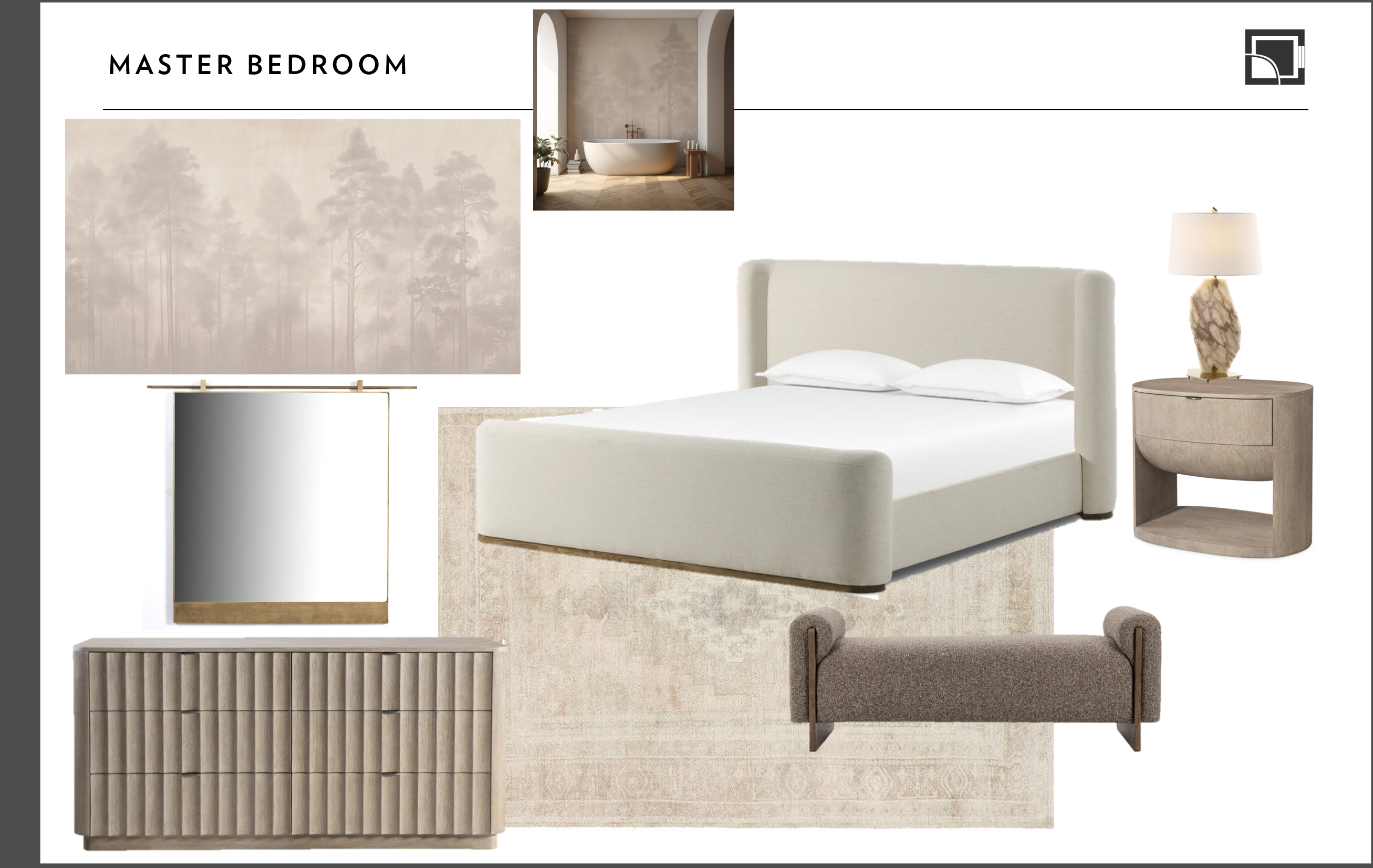 master bedroom the mural of the trees make into a mural wall on the right side of the bedroom behind each nightstand add a window