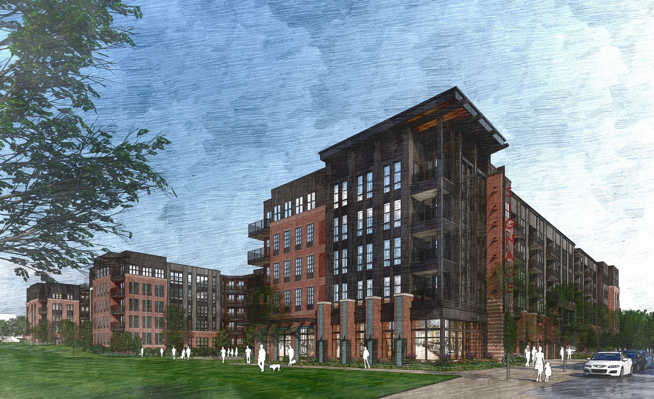 active office building rendering improve materials sunset gradient sky downtown charlotte beyond