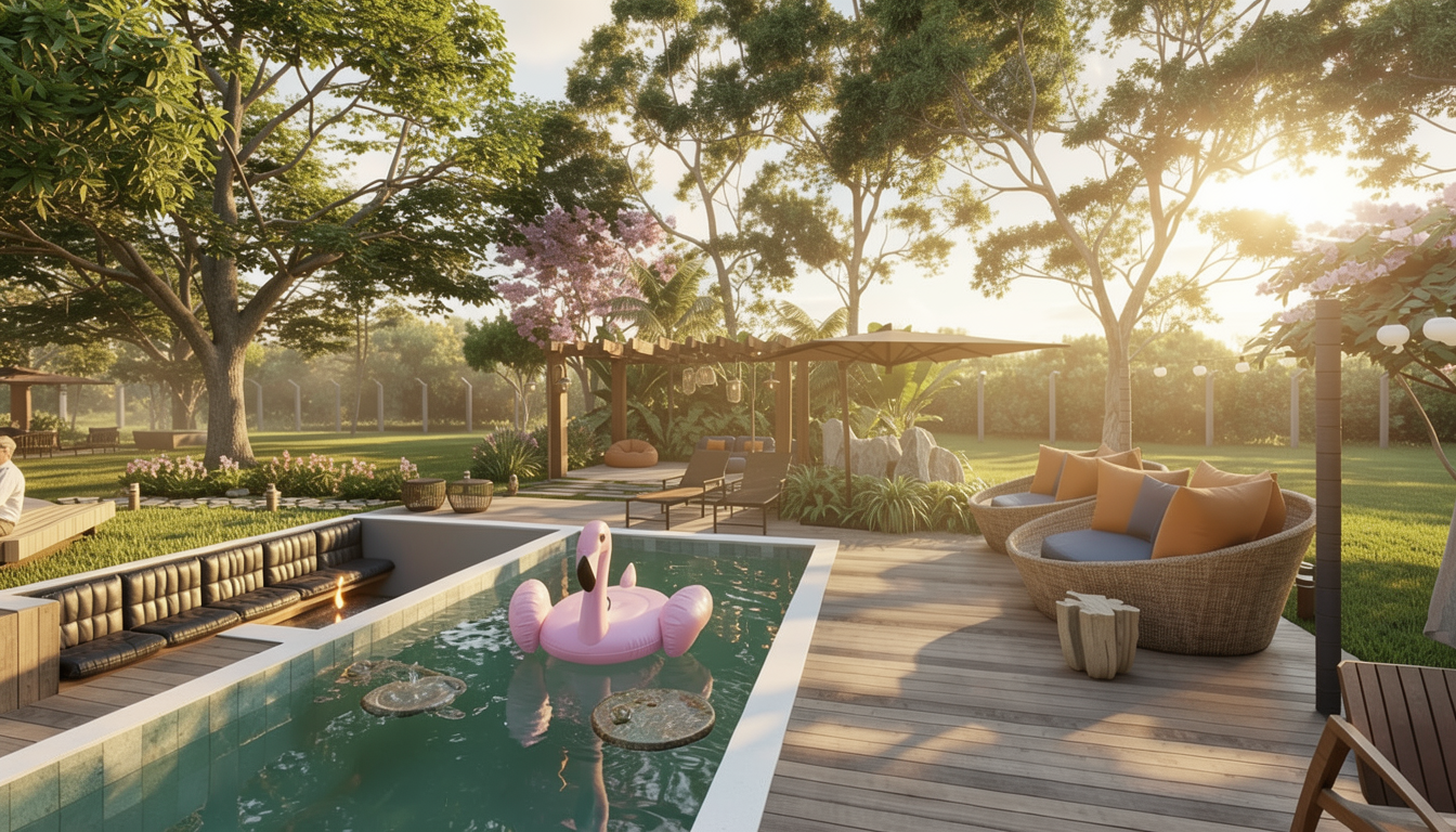 replace the current furniture with anything more modern and dynamic for an outdoor terrace space add greenery a mix of different height plants with luxury quality pots