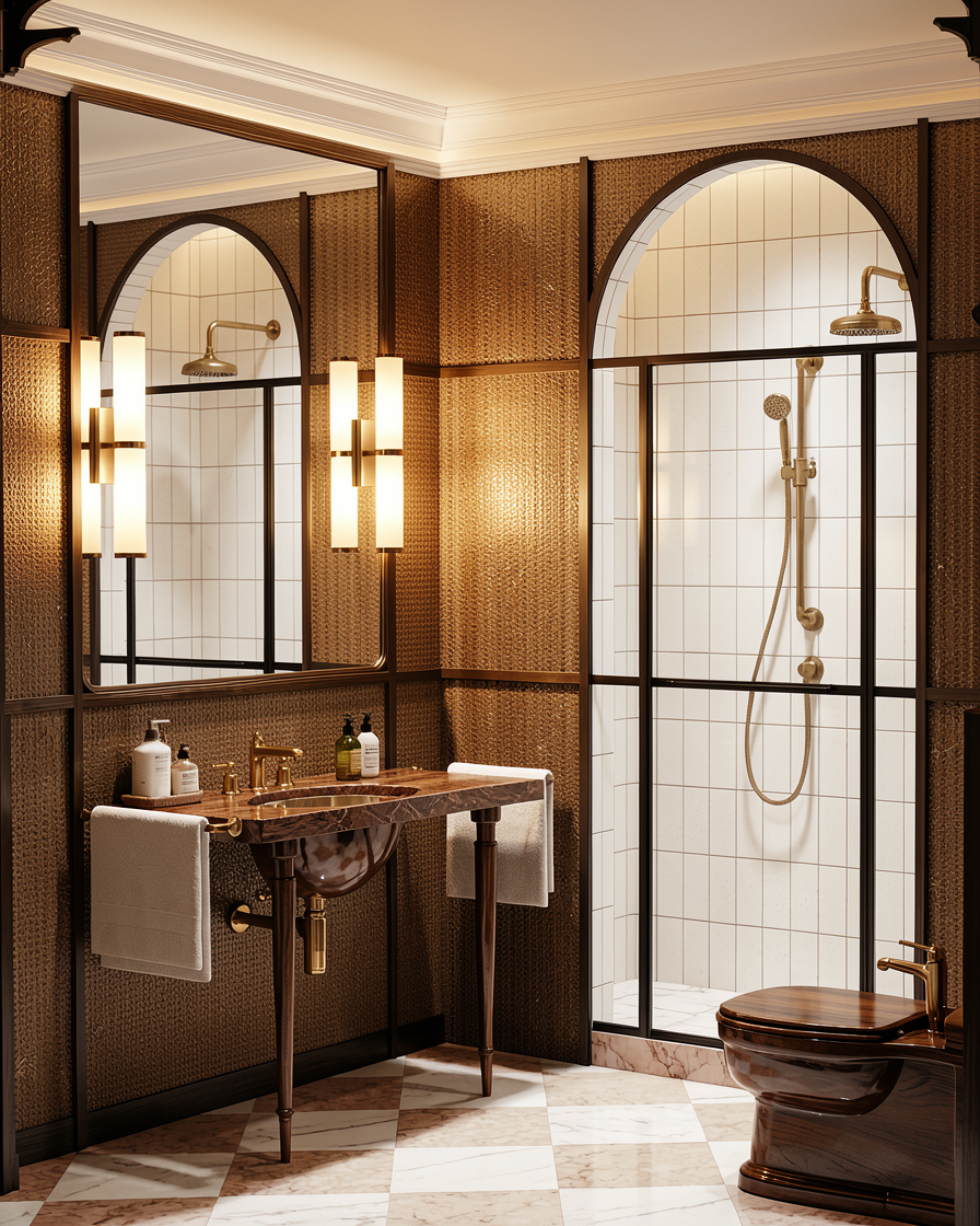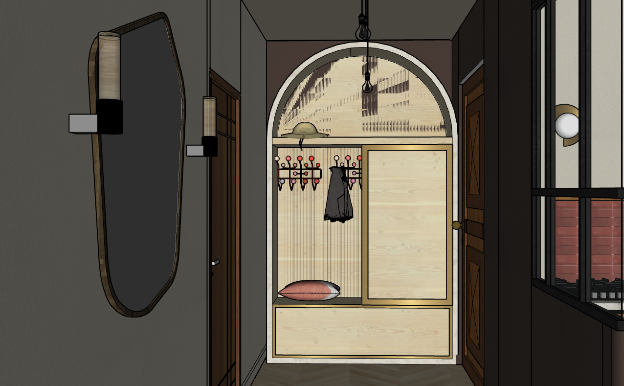 beautiful realistic entrance with a mirror with a view of paris buildings inside