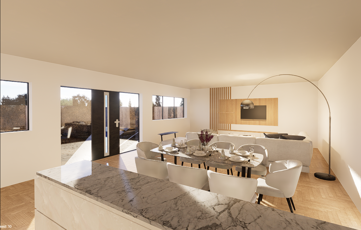 make this living and dining space feel warm and inviting with natural light and some warm led lighting to the media wall add some ceiling spotlights evenly spaced