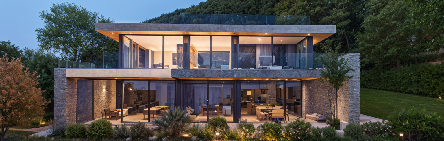 architectural photography of a luxury resort in dubai view from an outdoor terrace with timber pergola overgrown with hanging and vertical greenery timber floor and sunken built in seating made from sandstone soft seating on the top with lots of pillows for the back rest in the background we can see a beautiful lush park with palms trees and bushes and villas peaking through the vegetation architecture