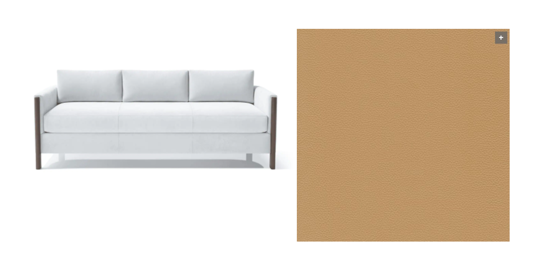 make this sofa leather in the color in the swatch to the right remove the swatch from the photo and center the sofa keep all else the same keep all proportions the same