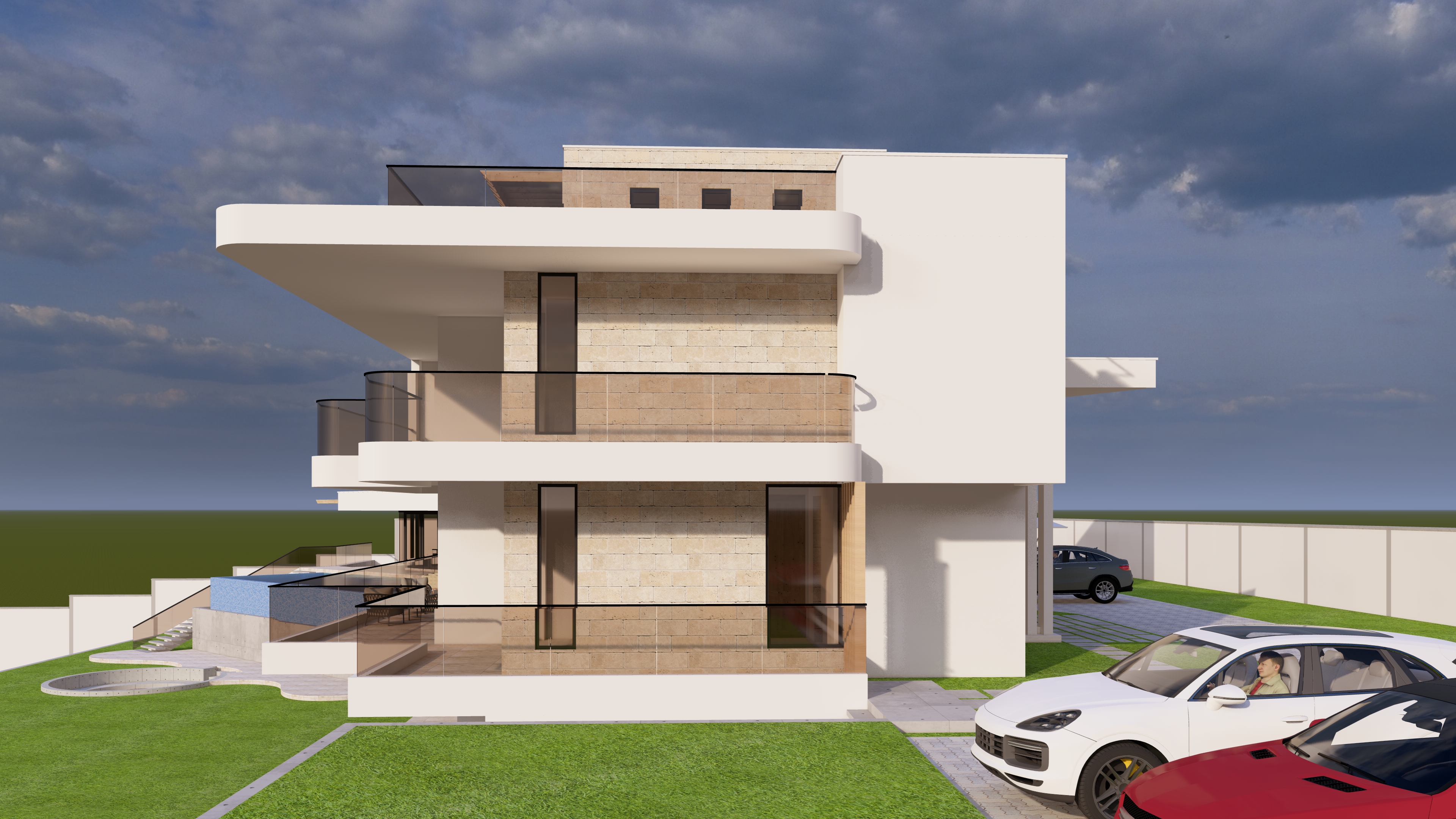 model of a villa add very few trees in background to give it context
