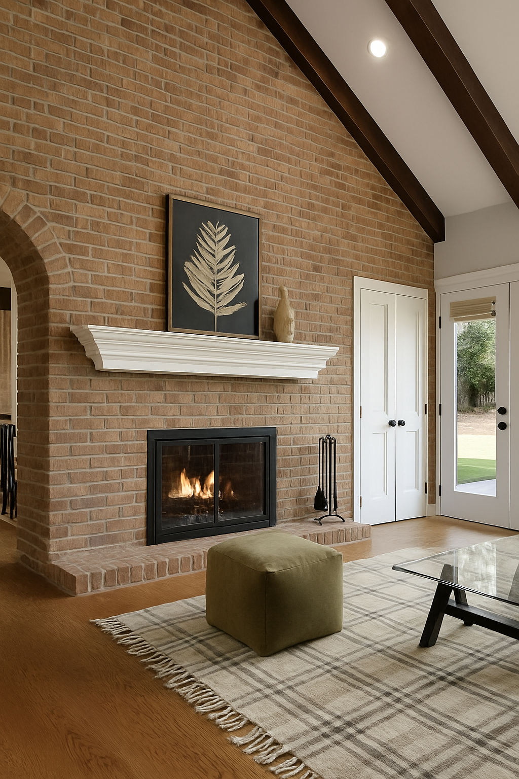 light grey carpet floor mirror above bench light tan cabinets