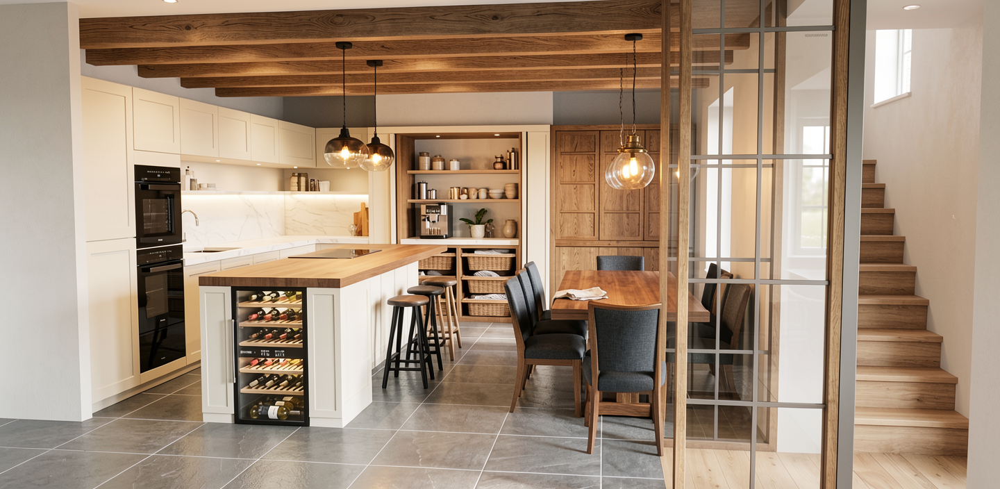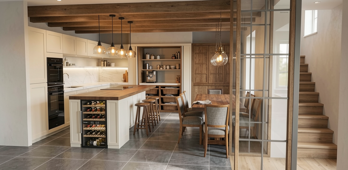 add three small wicker pendant lights above kitchen island change nothing else to image