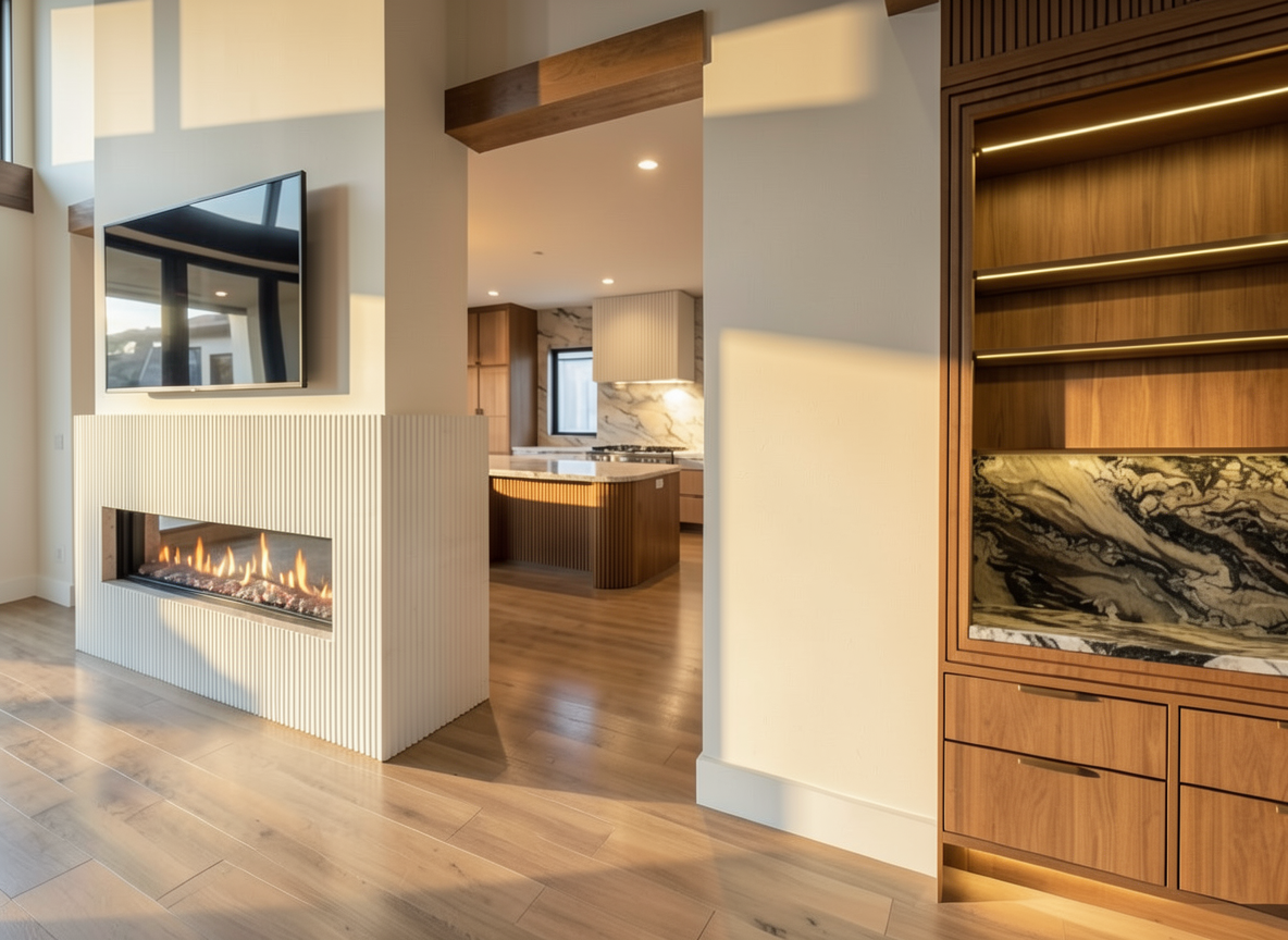 continue the slab backsplash all the way to the tope of the cabinet on the far right hand side of this image