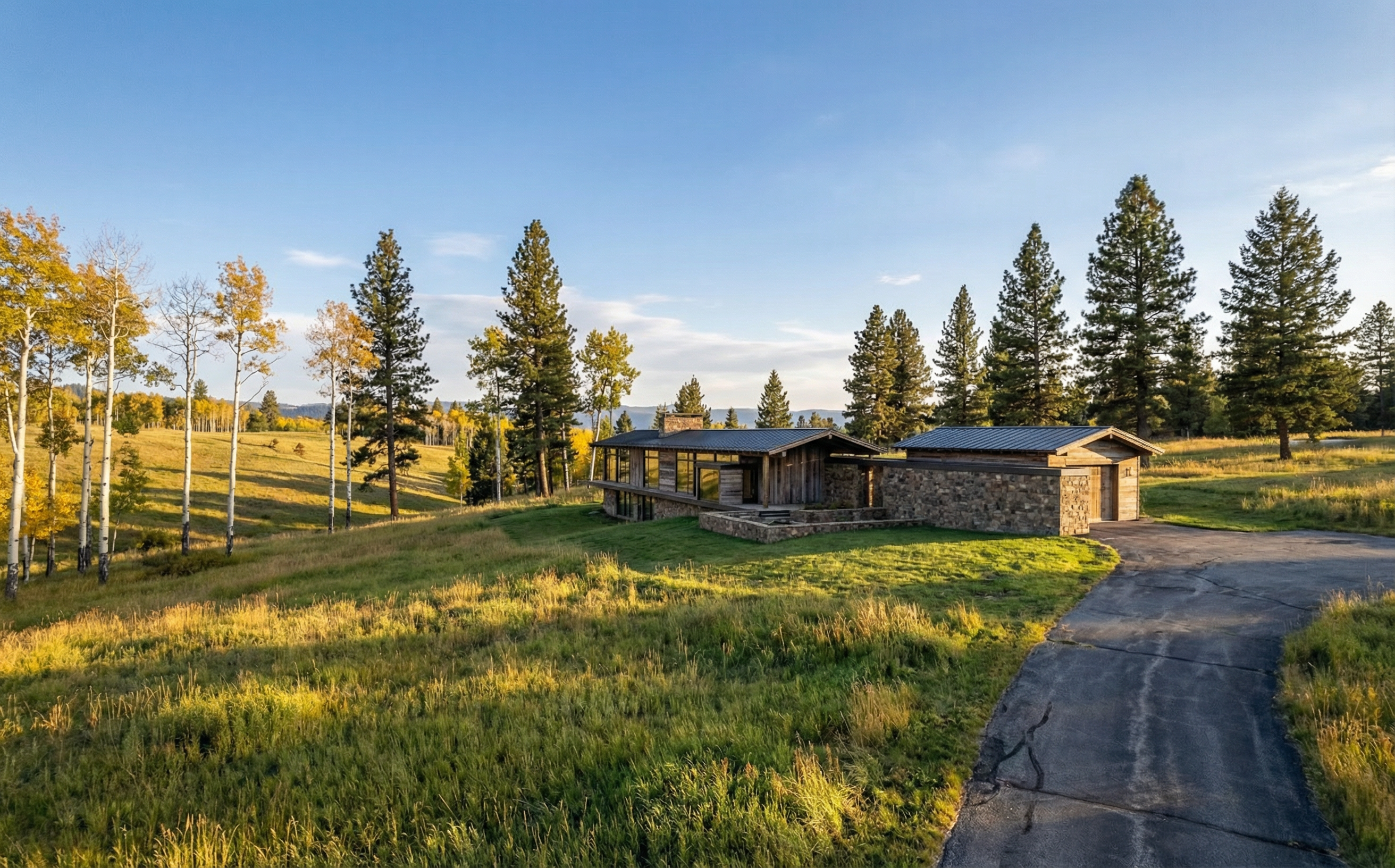 idaho grassy landscape rolling hills with aspen trees and pine trees