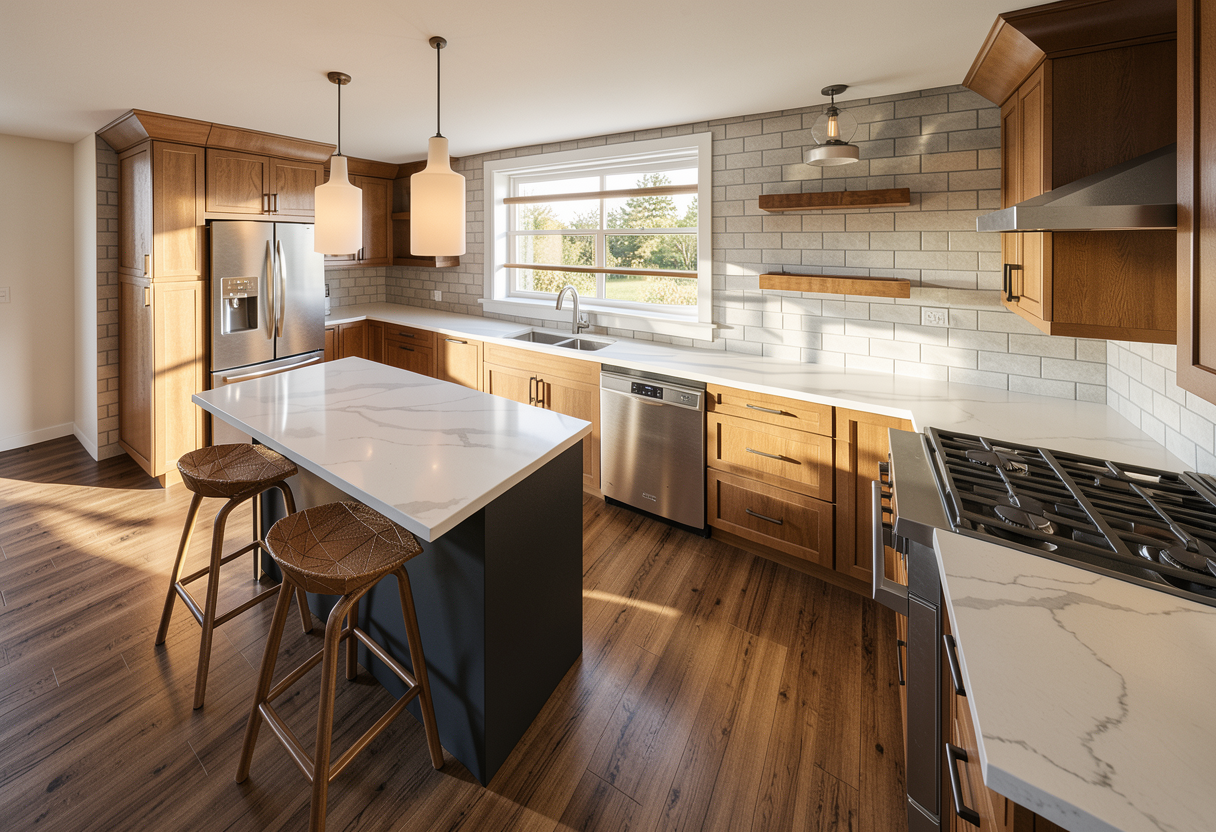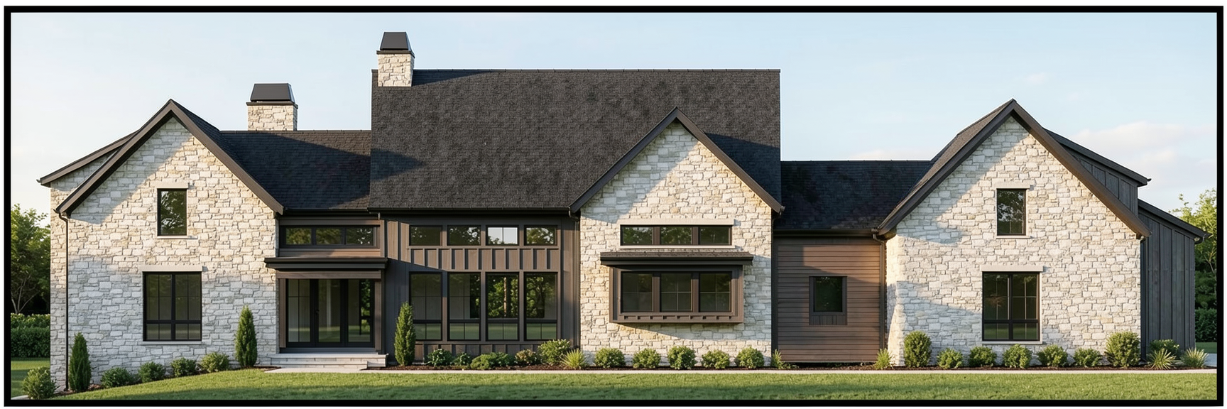 please add more flowers to the front mulch beds and a small japanese maple on the left side near the corner of the house about 10ft in front of the house please remove the mulch bed on the right side of the driveway and replace it with pavers to extend the driveway space please add small windows to the top of the garage door make the front entrance feel more coastal luxury change the front door and the exterior sconces to match this style
