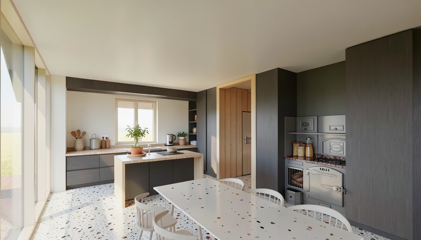 render a photorealistic 3d perspective of this house reference the current material style just enhance the oak vertical wall keep model geometry the same windows doors roof walls garage door pavement driveway make a lush vegetation that looks native san souci nsw do not change the view only enhance the current materials and make the landscape nicer vegetation detailed textures in the wood siding and glass reflections and a vibrant clear sky with light atmospheric depth render in hyper realistic architectural visualization quality 8k resolution front yard is landscaping