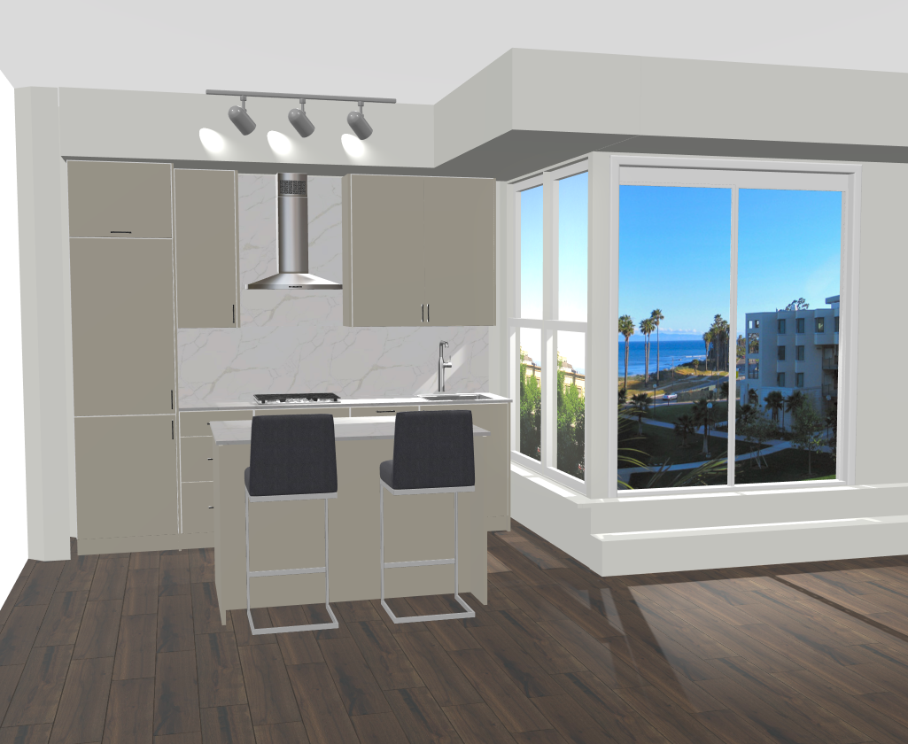 keep the floor the same change the kitchen and island cabinets to medium grey high gloss the quartz is white with some light veining