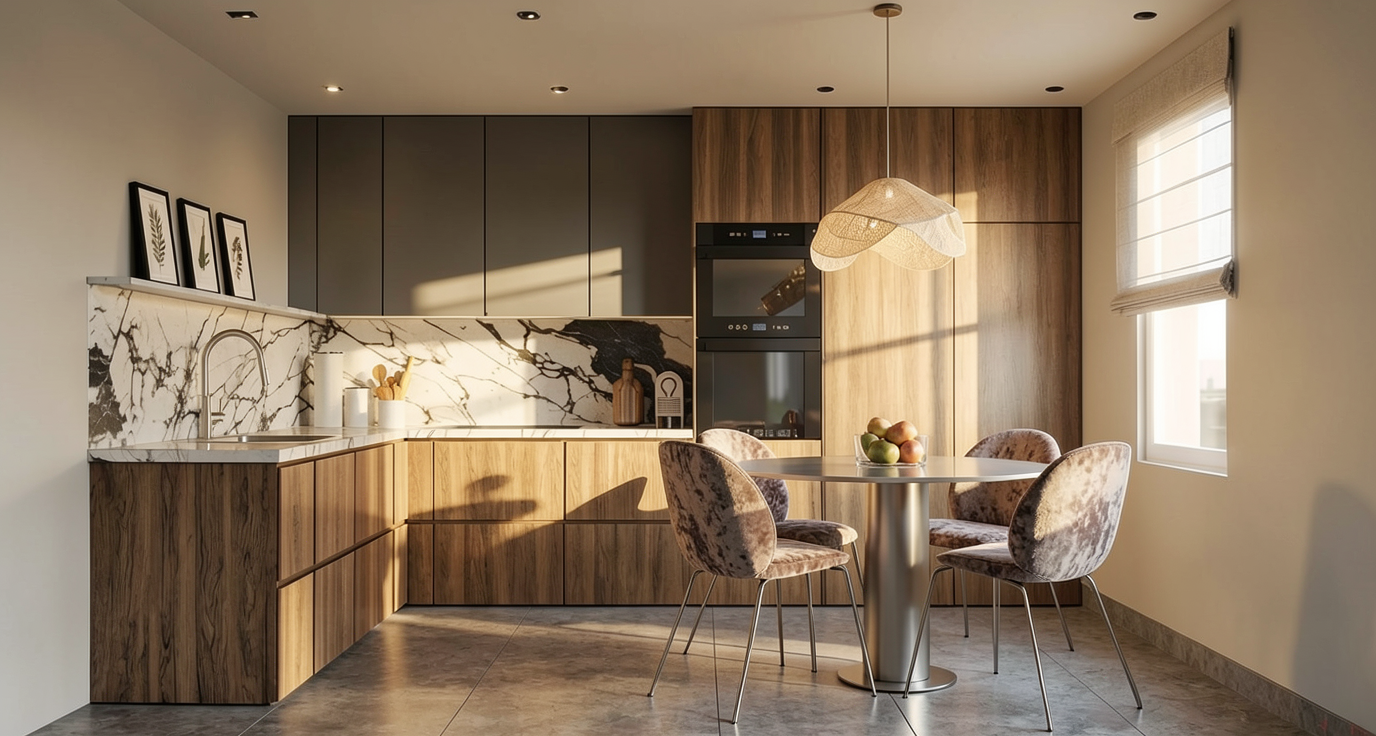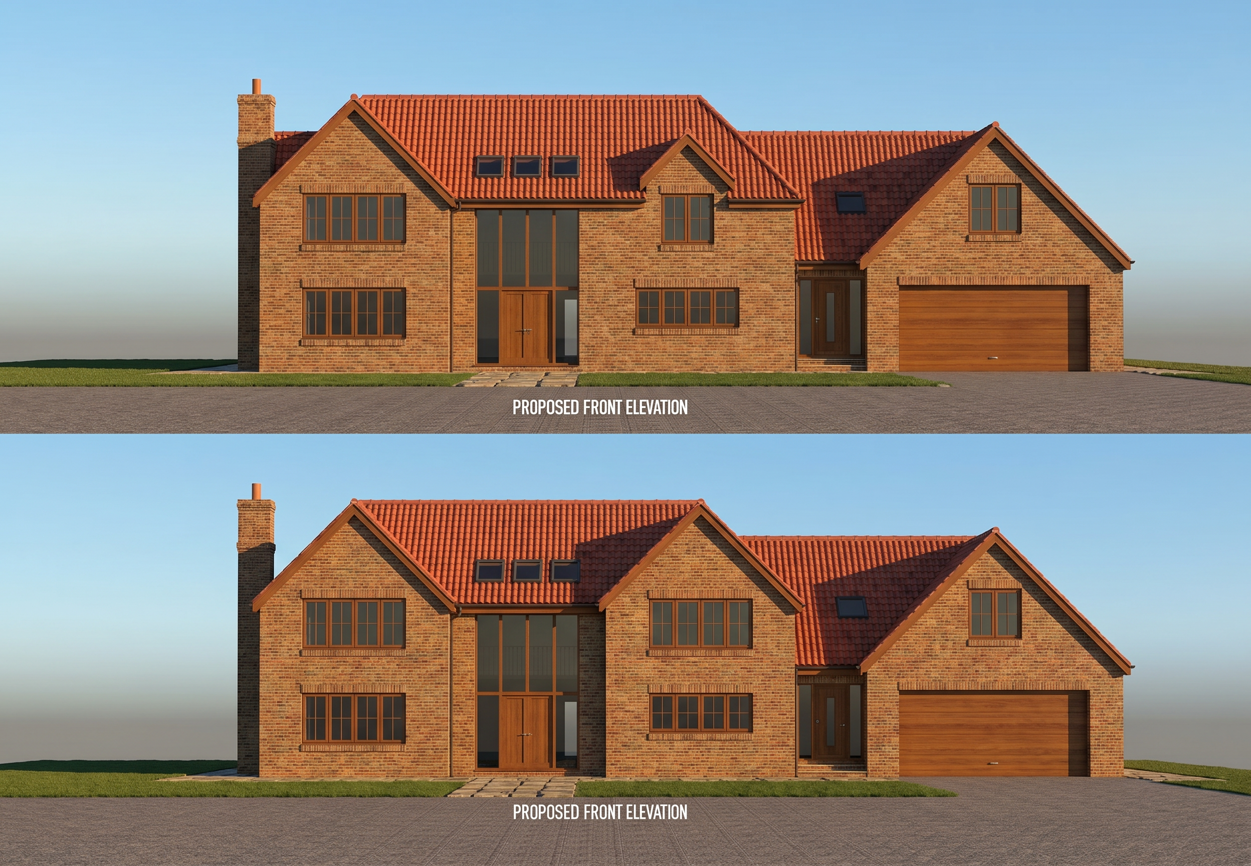 red pan tiles brown windows and doors brickwork walls light cloudy sky landscaping