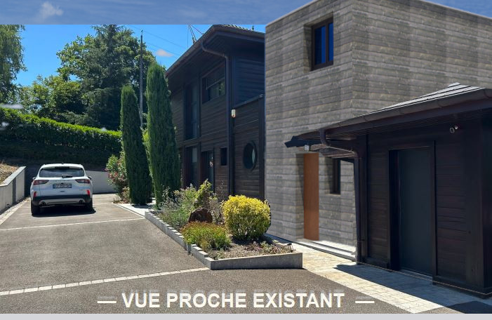 apply the texture of the main building on the modelized volume door and windows should be anthracite