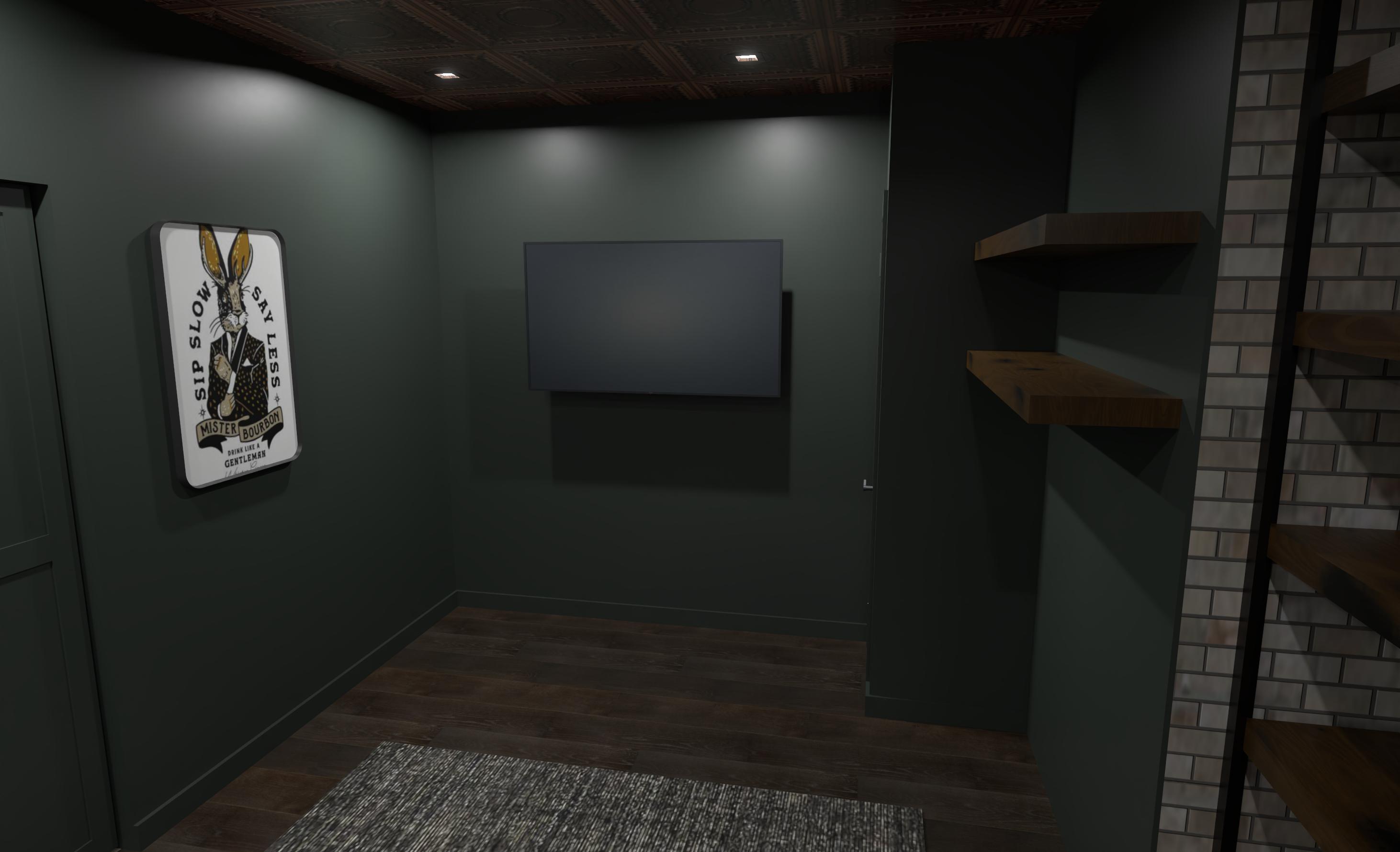 1920 s speak easy style bourbon room shelving to have bourbon bottles add media console under tv with alcohol storage 1920 s wall sconce on side wall