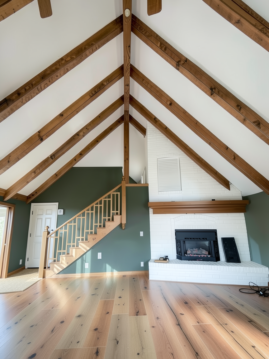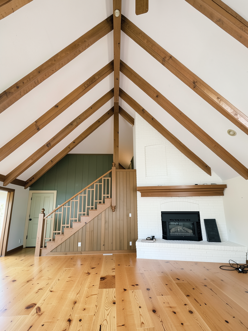 make the all the flooring a wide plank wood floor with minimal knots natural color paint all the walls a very light tan color