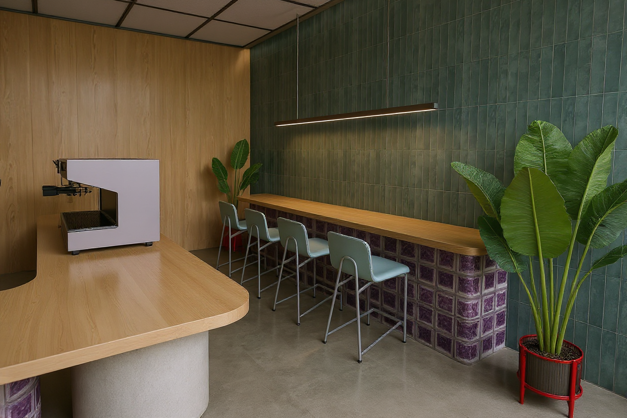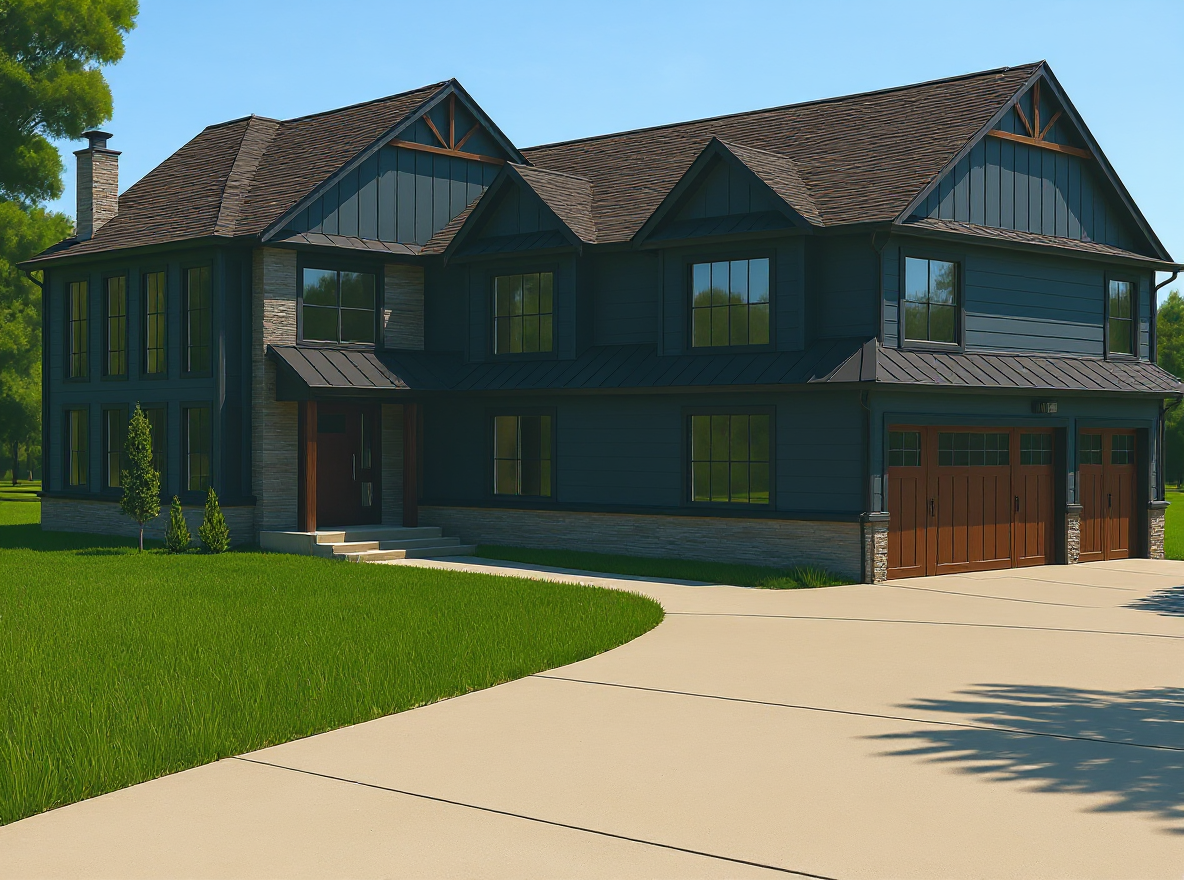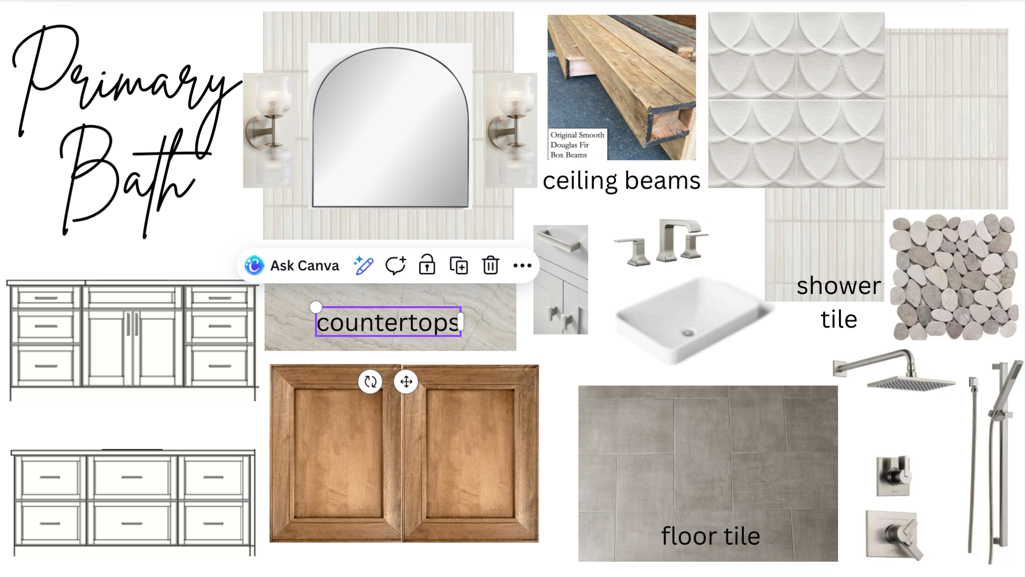 turn this color board into a photorealistic picture of a master bathroom with a large picture window