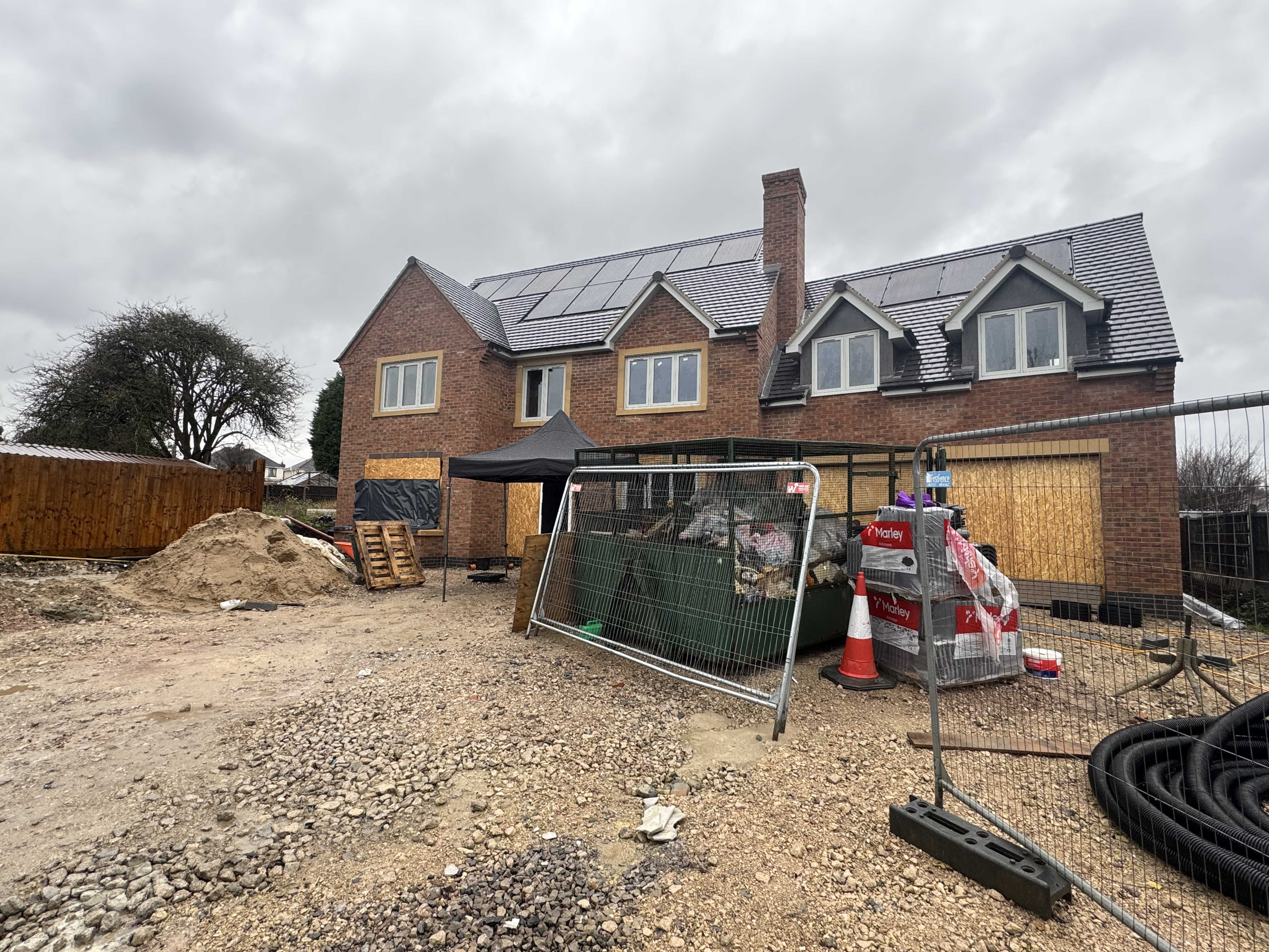 with black front door and black garage door block paver drive