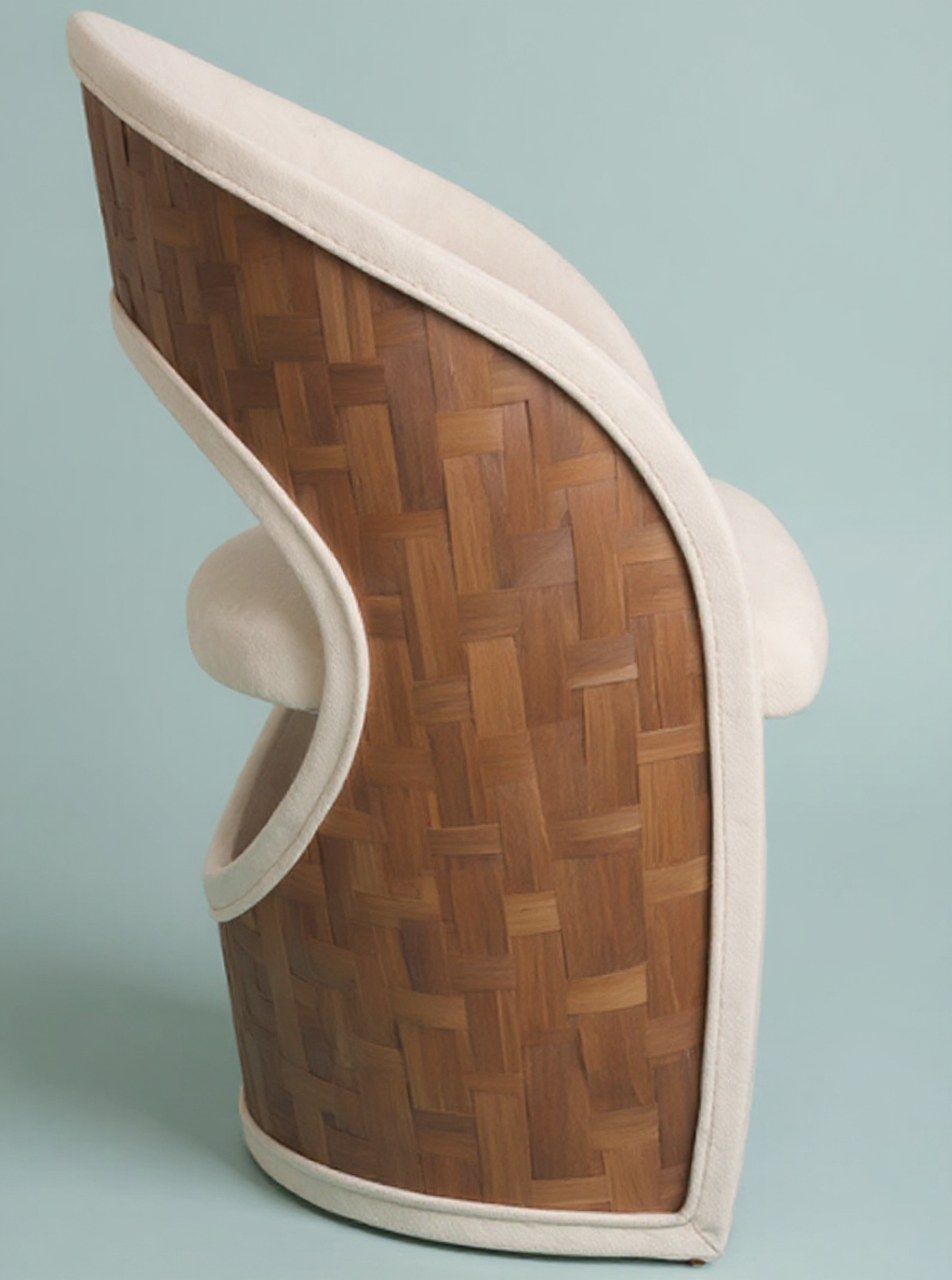 accent raffia weaving back portion upholstered with white fabric seat and back