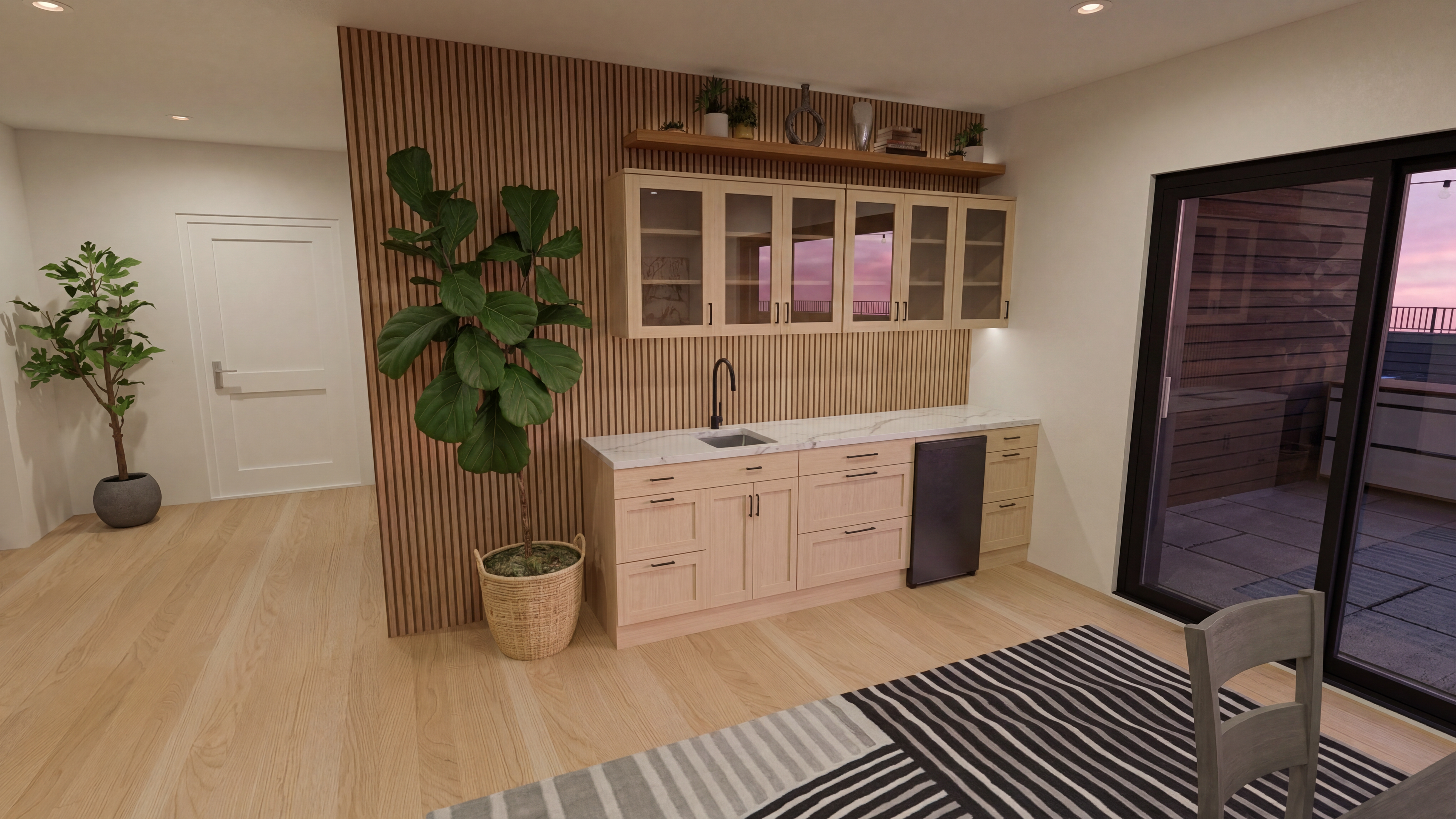 this is a tonkatsu izakaya place traditional japanese plates and cups on the tables the lighting should be soft and warm evening time glow the lanterns should have japanese script on them staying in the theme of a tonkatsu izakaya make the screen in the middle solid wood it s the back of the booth the greenscreen in the back is an industrial kitchen with two workers facing away place soju and sake bottles on the shelf to the right there s a hallway behind the shelf that leads to the kitchen through the glass on the right is outside it s nighttime render the far left wall that you show as white black instead