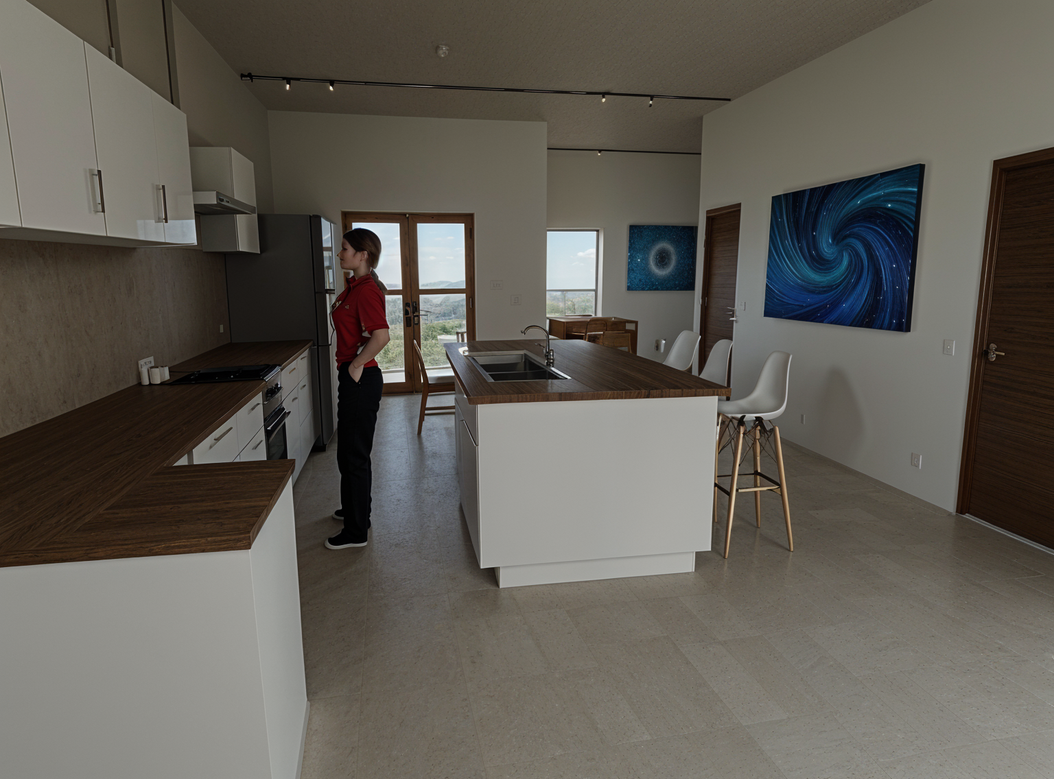 keep the building the same but add greenery with lush plants and decorative bushes along with stylish people and sleek cars show lively activities around the building including upscale outdoor caf s sophisticated seating areas and vibrant social interactions make the entire scene look very luxurious high class and fancy with a clear atmosphere and no haze