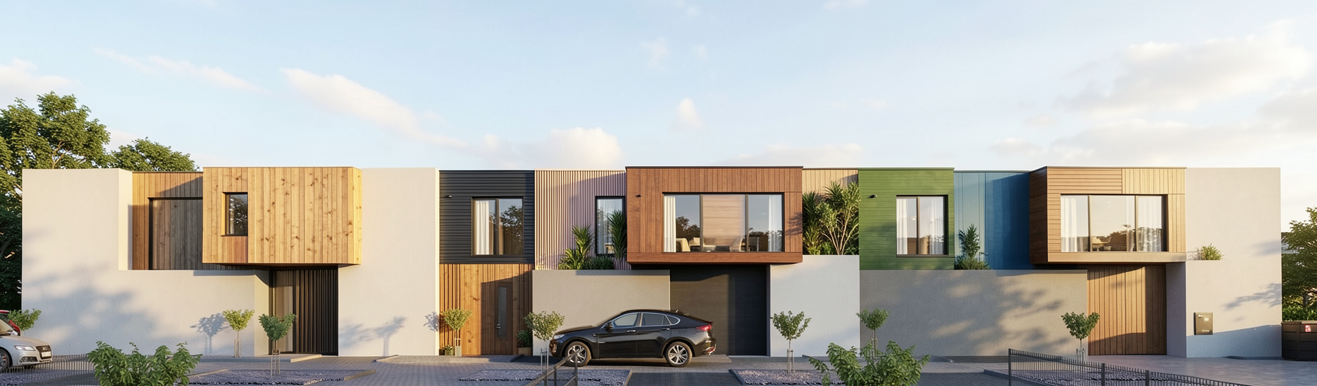 exterior shot add the exact round metal side table from reference place the table in front of the sofa right side of the image not near the armchair position between sofa and rug aligned with the front edge of the sofa approximately centered relative to the sofa length clearly separated from the armchair do not place the table near the armchair table must be empty keep everything else unchanged no camera change no crop no repositioning of objects