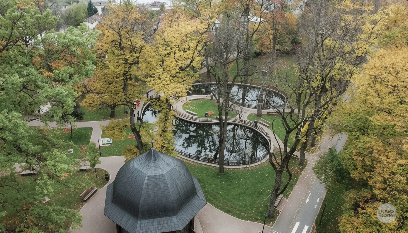 important preserve the existing geometry and the existing context exactly as provided do not modify alter reinterpret add remove scale or reshape any geometry do not change the site surroundings street layout neighboring buildings vegetation or context elements do not modify geometry scale proportions buildings road layout sidewalks or surrounding context in any way do not modify text soft late afternoon natural daylight neutral and diffused sunlight subtle shadows summer atmosphere soft ambient subtle sky reflections in windows slightly reflective glazing with realistic fresnel effect light breeze feeling in vegetation natural green tones sunlit tree leaves casting soft dappled shadows photorealistic exterior visualization balanced exposure no harsh highlights no overblown whites slightly warm white balance realistic asphalt reflections with mild roughness physically accurate light behavior high dynamic range but controlled keep contrast do not add any geometry in the background important do not add lens flare do not add haze do not add people