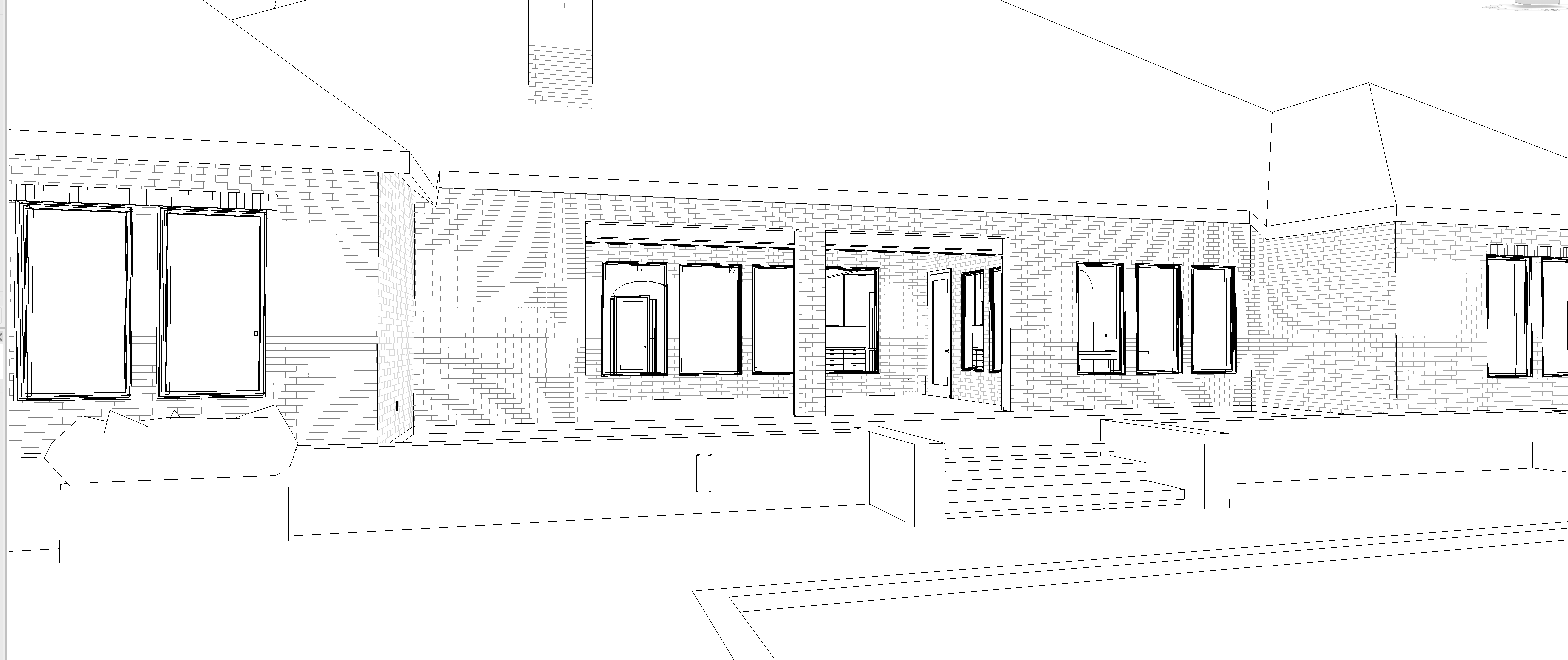 traditional reddish black windows black roof lush landscape swimming pool over casted day