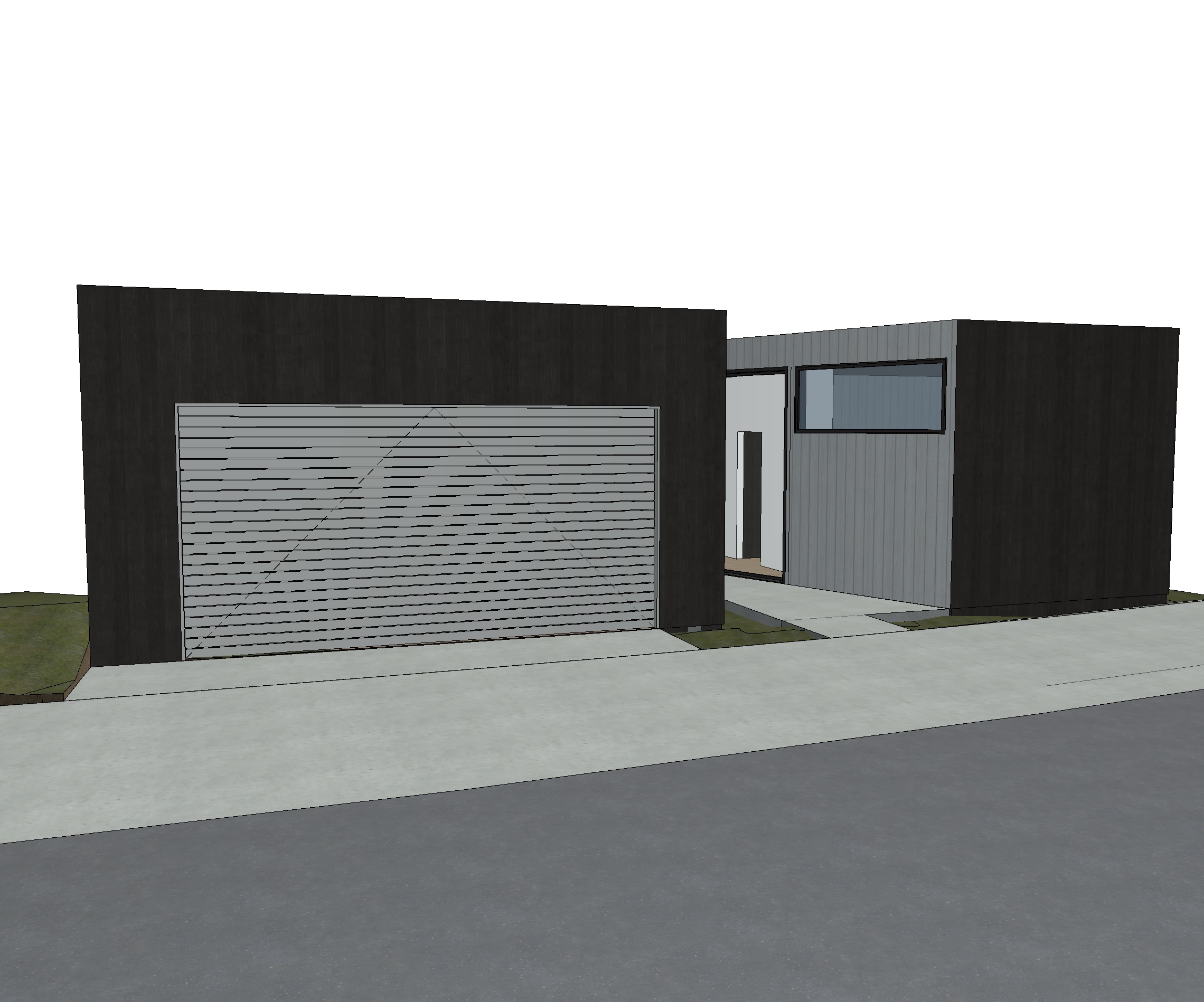 modernist exterior shot los angeles sky background road in foreground add planting in green areas architecture