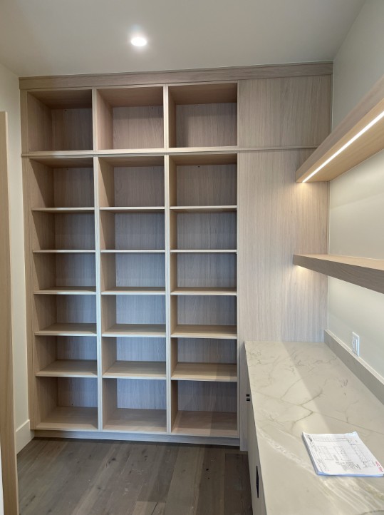 stage the shelves with food and baskets stage the countertop with containers for baking natural daylight