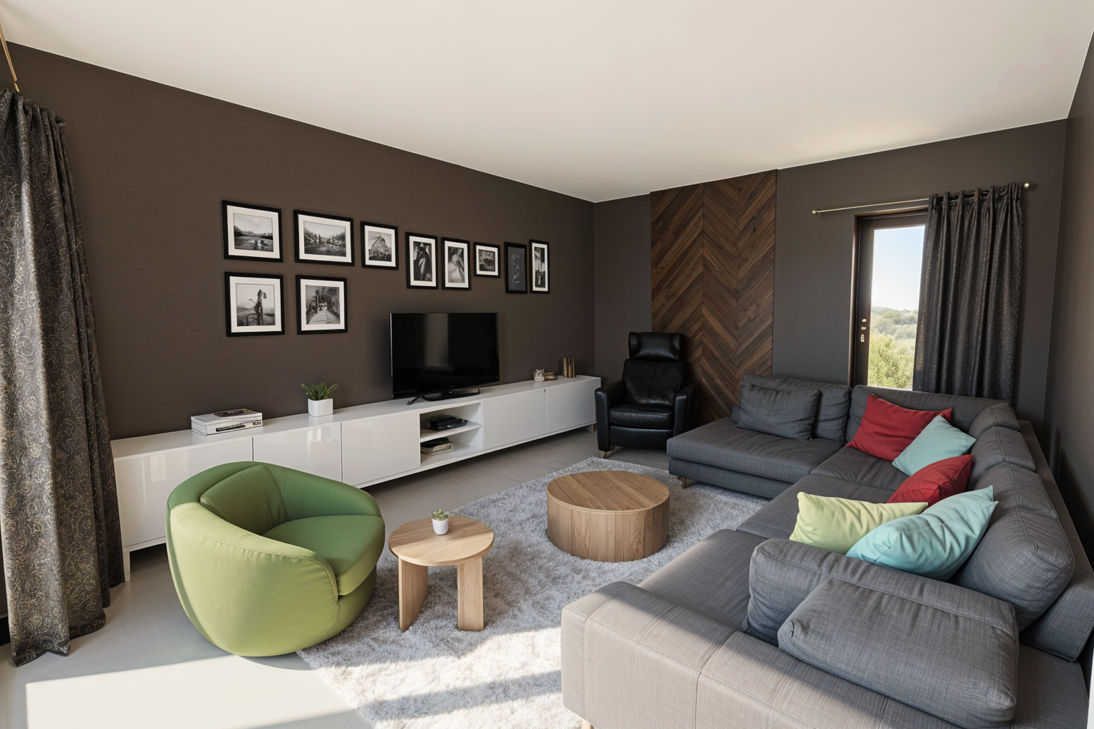 modernist interior shot a photorealistic luxury gym interior designed in a modern minimalist architectural style the space features light oak wood flooring with subtle natural grain and a matching vertical slatted wood ceiling walls are finished in warm beige textured concrete creating a calm and grounded atmosphere matte black steel gym equipment cable machines bench press elliptical trainers is arranged in a clean uncluttered layout large frameless mirrors span the walls reflecting depth and symmetry soft indirect led strip lighting runs along ceiling edges and wall reveals paired with recessed linear spotlights aligned with the wood slats warm ambient lighting 3000k enhances the natural tones sculptural indoor greenery such as olive trees is placed strategically to soften the space and add a biophilic luxury feel accents include brushed blackened steel and champagne bronze details along with dark leather upholstery on benches the overall mood is calm refined and upscale wellness focused similar to a luxury hotel gym composition is wide angle eye level perspective ultra realistic rendering soft daylight entering from large side windows 8k resolution high detail textures no people architecture