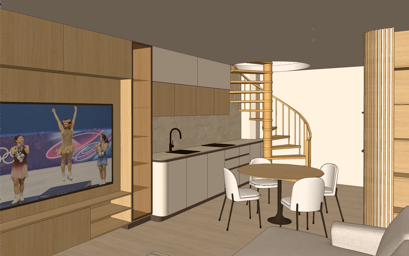 render a realistic interior visualization use soft subtle lighting with limited direct sunlight creating a calm and natural atmosphere