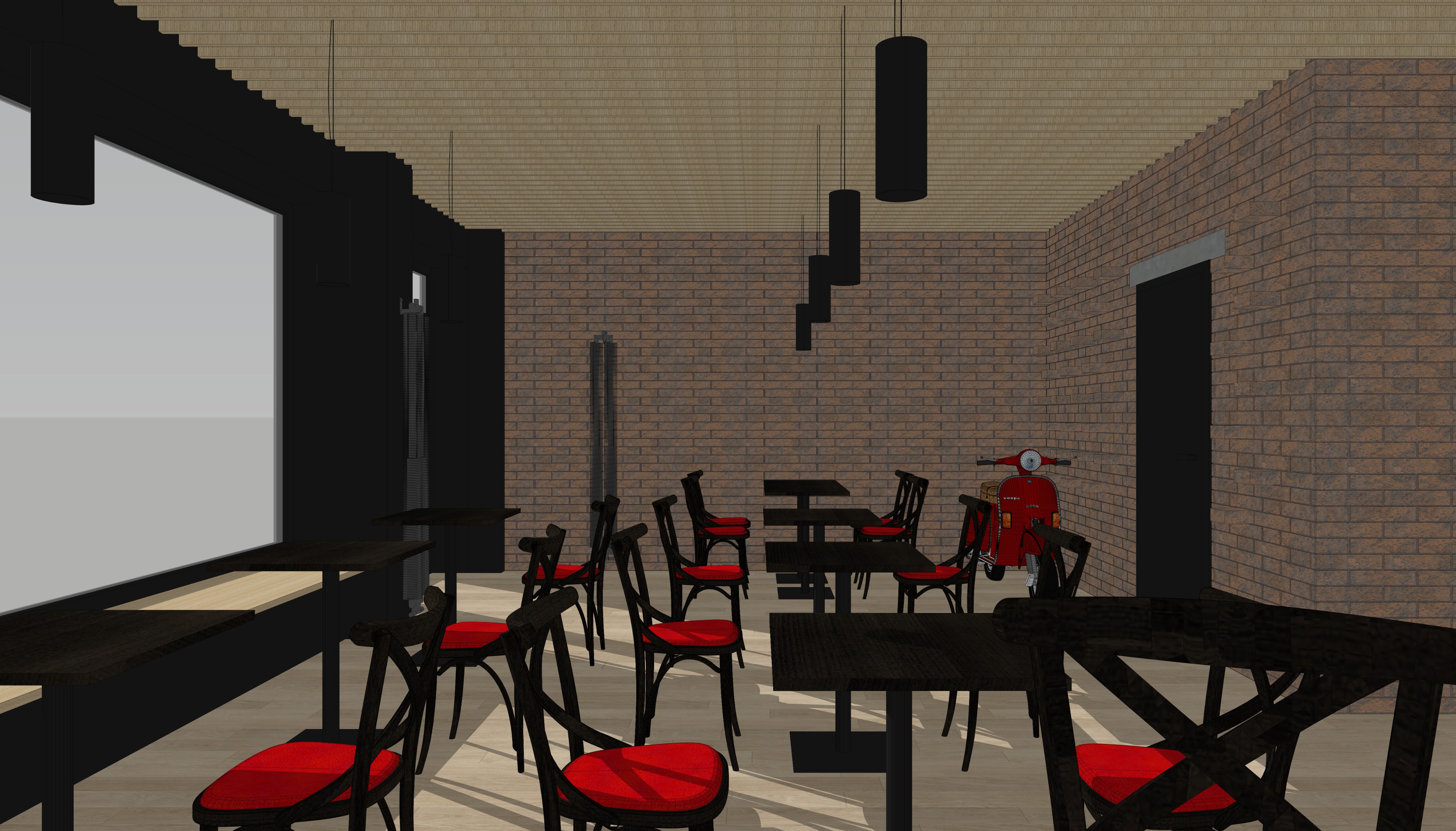 add a pedestrian area with a park outside the window