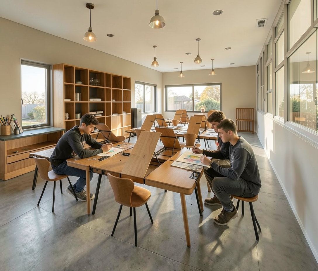 add 2 teens doing art in the current seats