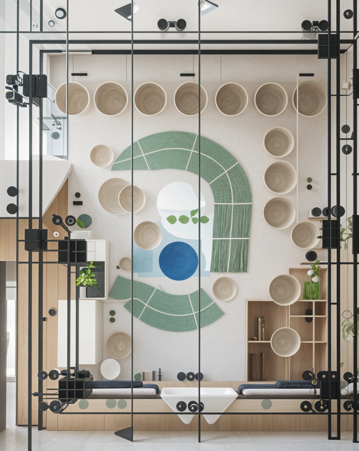 contemporary building facade with smooth grey plaster finish minimalistic modern design clean surfaces large vertical windows with dark aluminum frames subtle contrasts with natural stone base soft daylight elegant proportions refined architecture high resolution front elevation view architecture