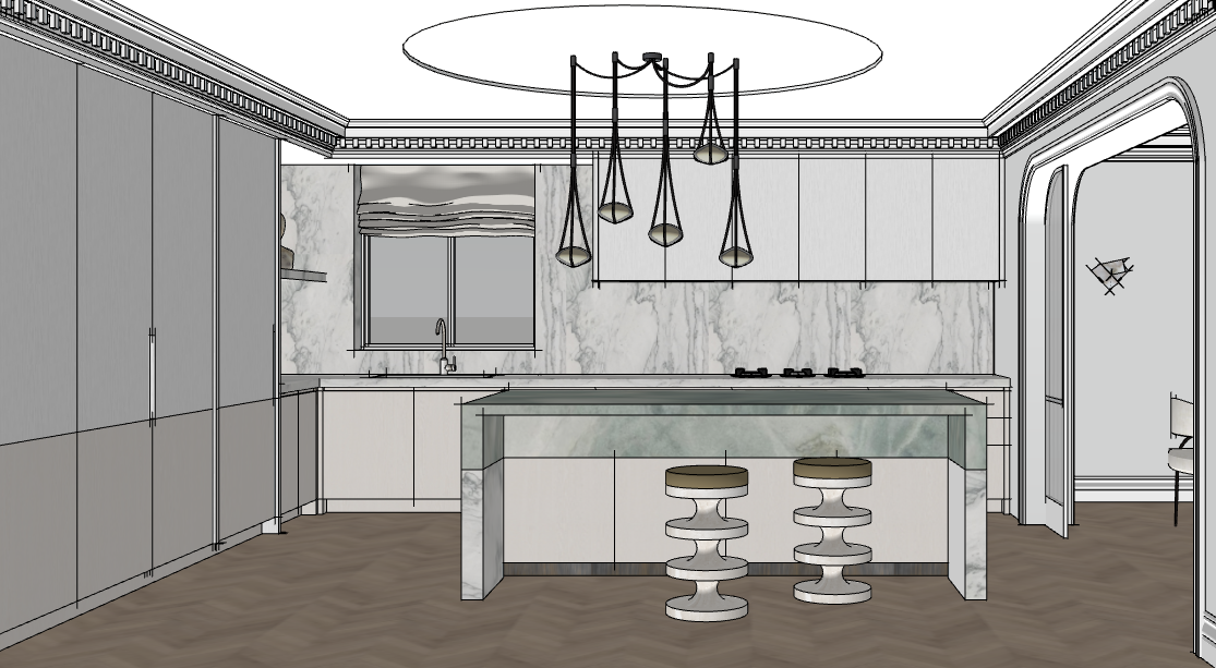 make cornice white and pulls to be integrated