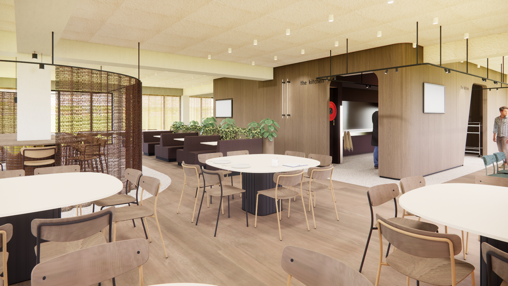 create a modern elegant interior lounge with a harmonious blend of textures and colors the walls are adorned with warm wood panels enhancing the tranquil ambiance