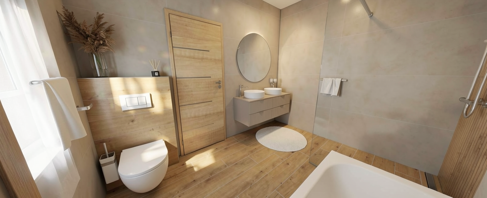 reate a realistic high quality interior render with abundant natural daylight the scene should be illuminated by bright warm sunlight entering through windows the lighting should feel soft yet vibrant creating natural shadows and a fresh daytime atmosphere outside the windows include a lush green view with trees and foliage suggesting a sunny day in spring or summer the greenery should appear vivid and slightly sunlit enhancing the connection between the interior and nature the overall mood should feel airy calm and inviting with clear daylight tones and realistic light reflections on surfaces avoid artificial lighting dominance natural sunlight should be the primary light source the led lighting recessed into the bottom of the upper cabinet runs along the entire length do not change the colors